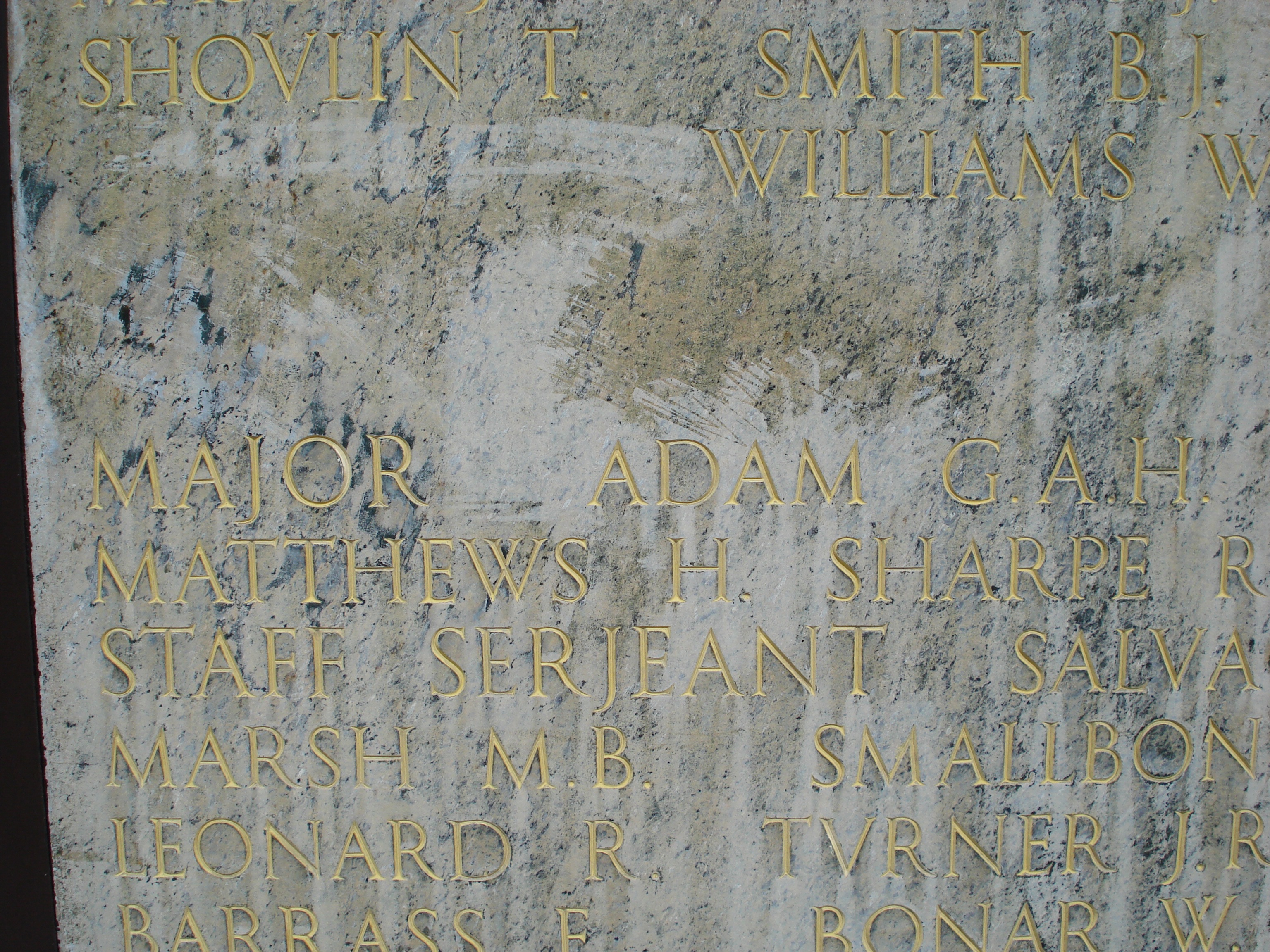 Son of George and Isabella Falconer (nee MacKeith) Adam. Born Johannesburg, South Africa. ref. UK, Army Roll of Honour, 1939-1945