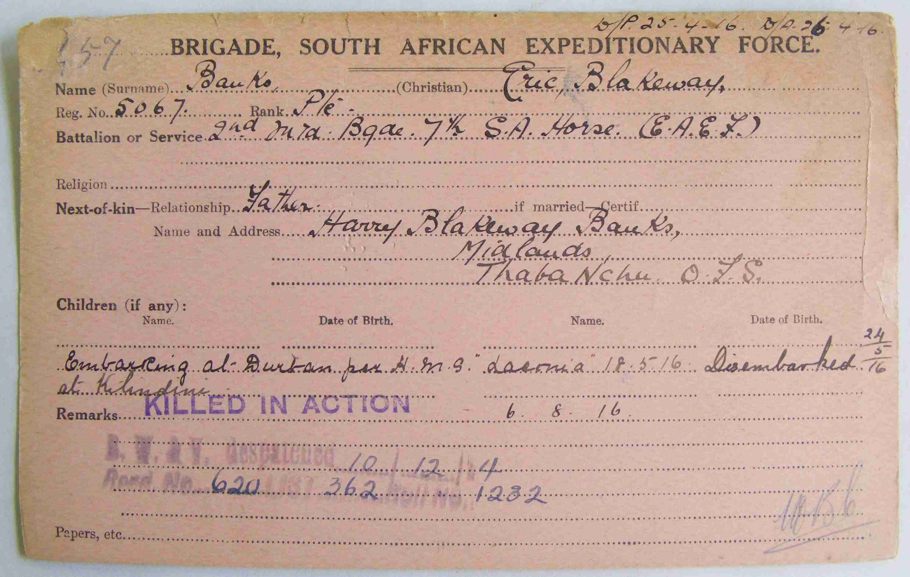 Son of Annie Banks, of Midlands, Thaba N'chu, Orange Free State, and the late Harry Banks.