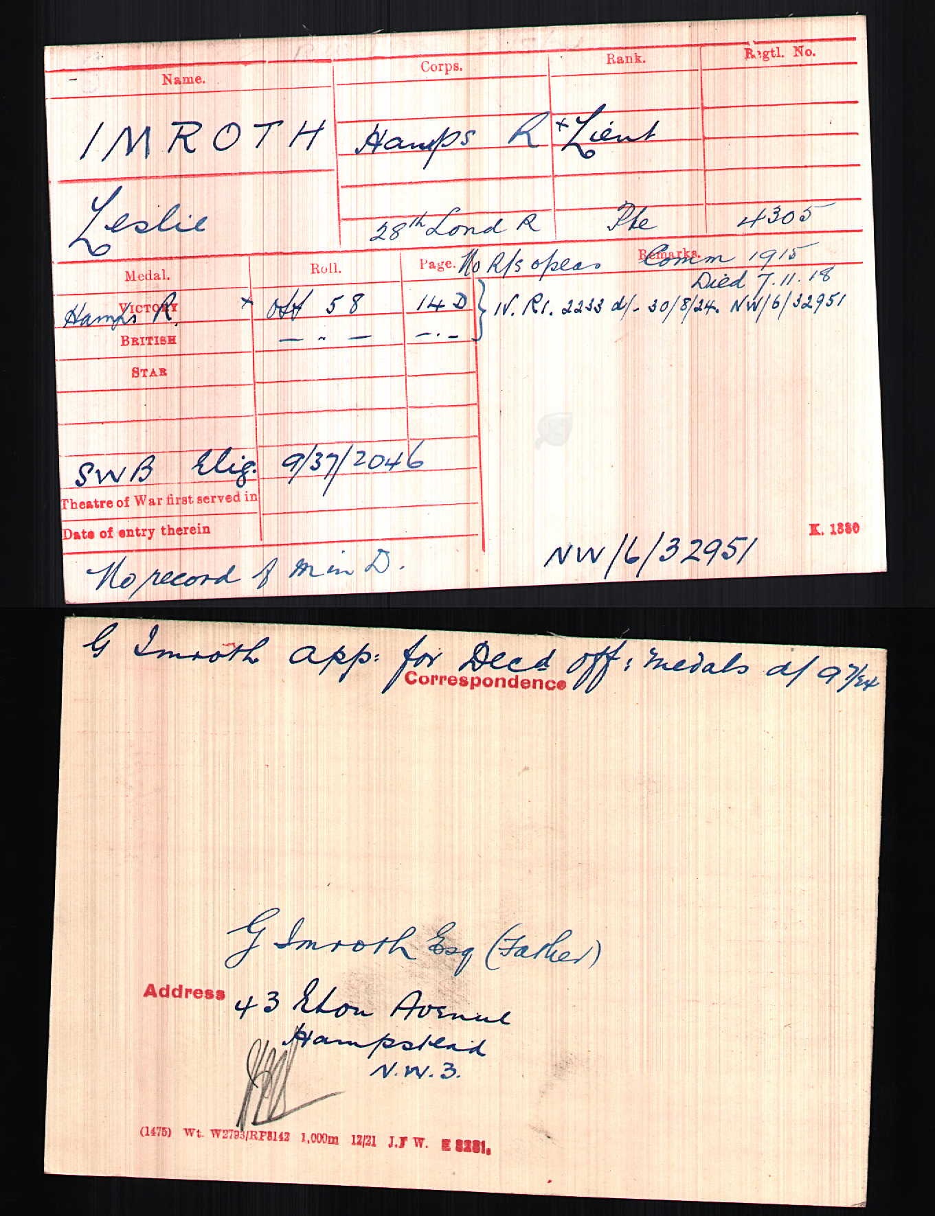 Died of wounds, received in France, on 30th Nov 1917 |