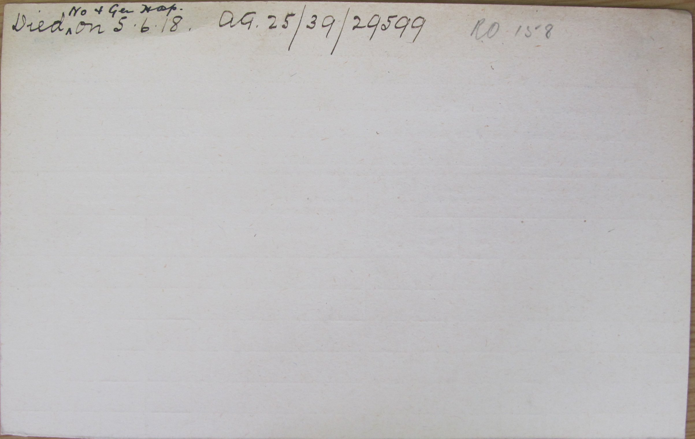 Died of burns, carrying a bottle of ether which burst in a room that had a fire, at No. 4 General Hospital |