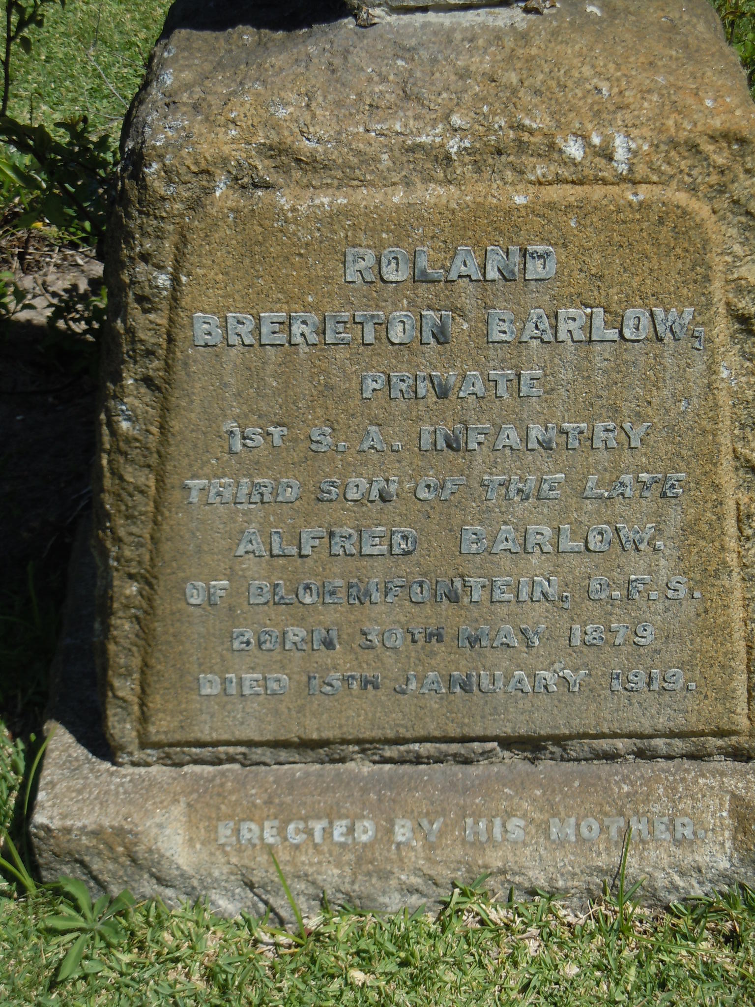 Son of Alfred and Kate Barlow; husband of Maude Barlow. Educated at St. Andrew's College, Grahamstown. Born at Bloemfontein. |