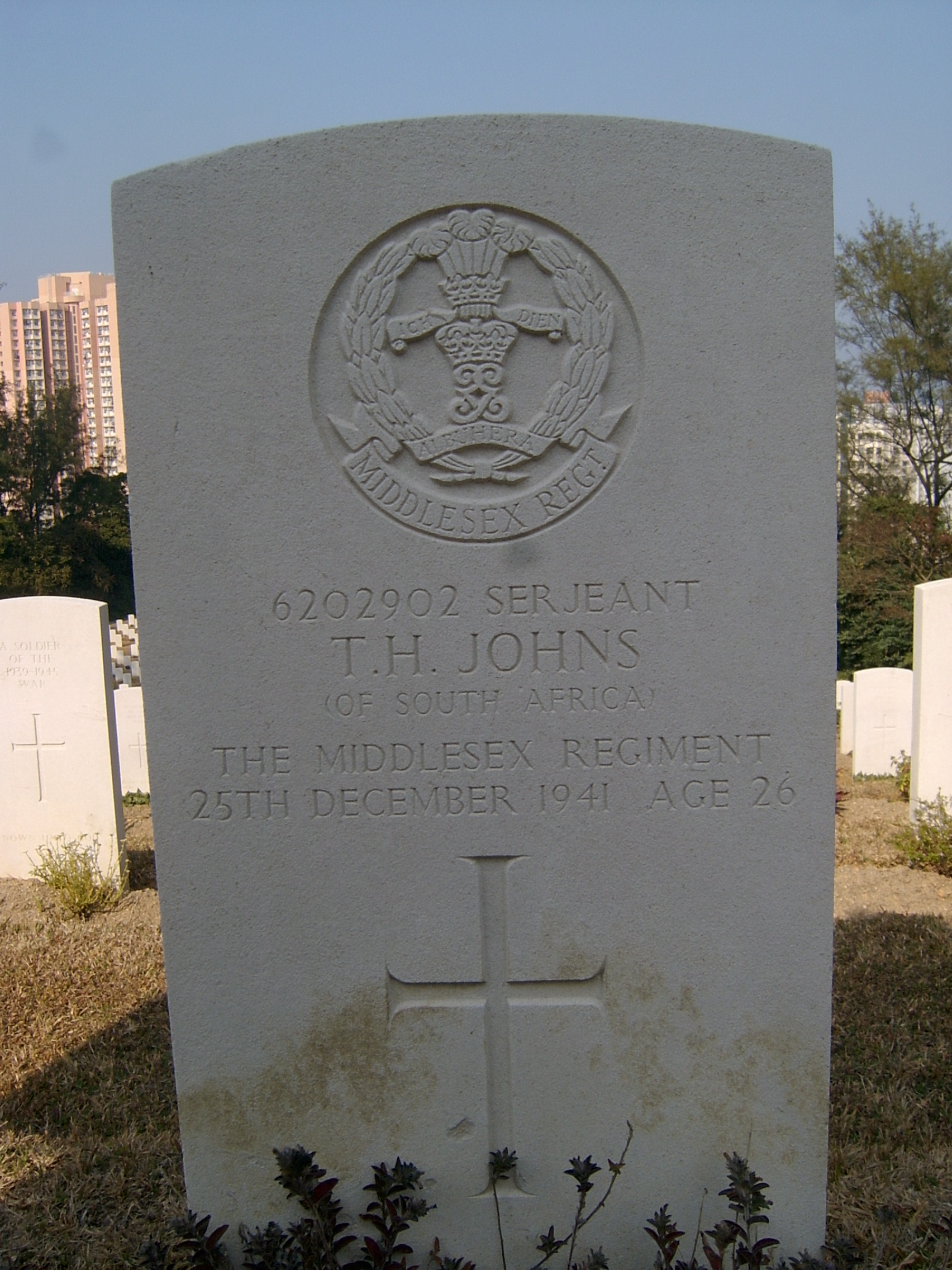 Killed in action, during a 7:00am counter-attack to drive the Japanese out of a copse. They attacked from the east and drove the Japanese into a Chinese shrine - which they attacked with grenades. This all occurred near St. Stephens College, Stanley during the final day of Hong Kong's defense. Leader of the attack is wounded and 4 men killed, Johns being one of them. |