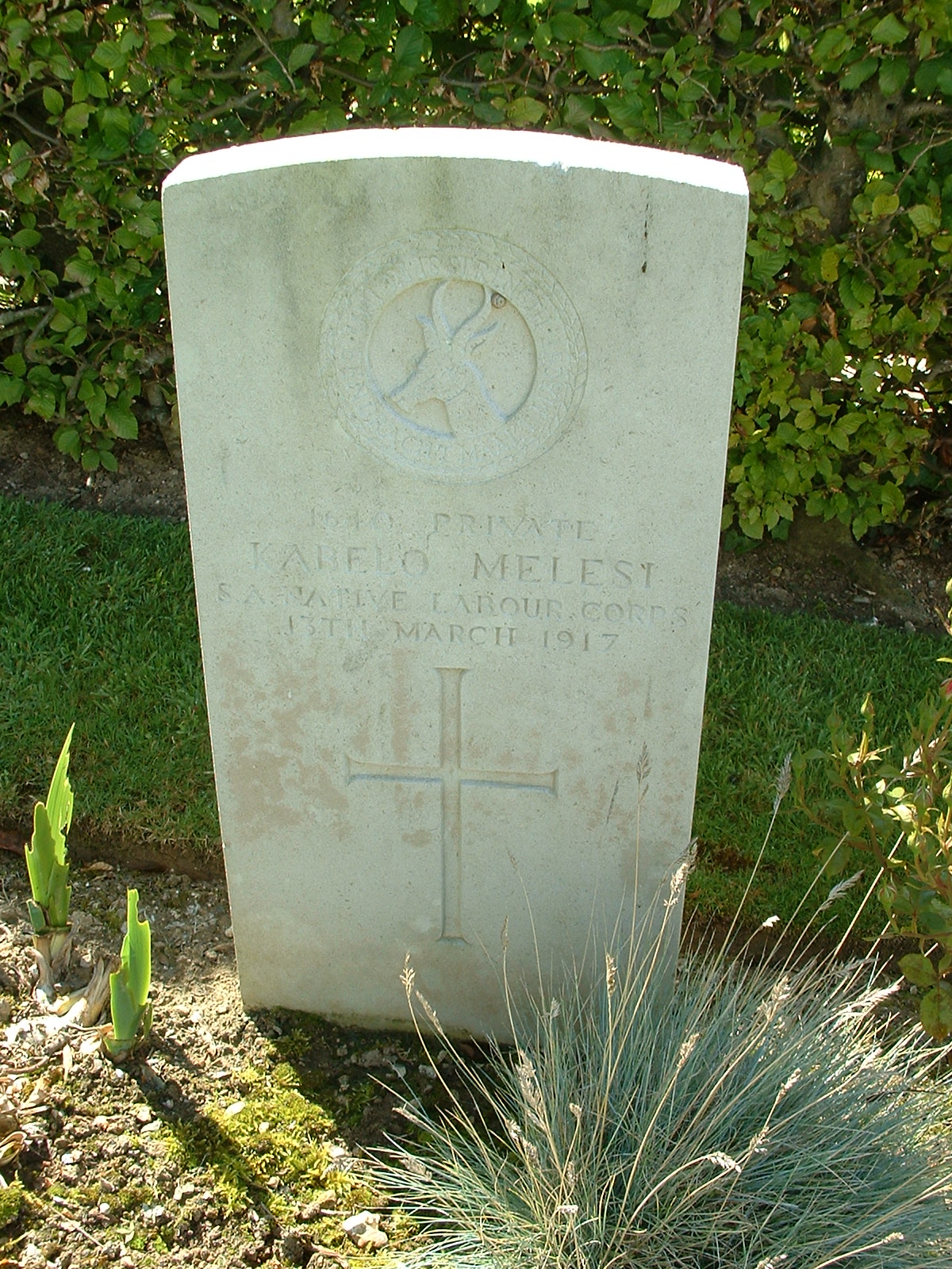 Son of Motlatla and Eliza Melesi, of Thaba Nchu. Originally buried on 13 Mar in Grave No 6, British Cemetery, Arques. |