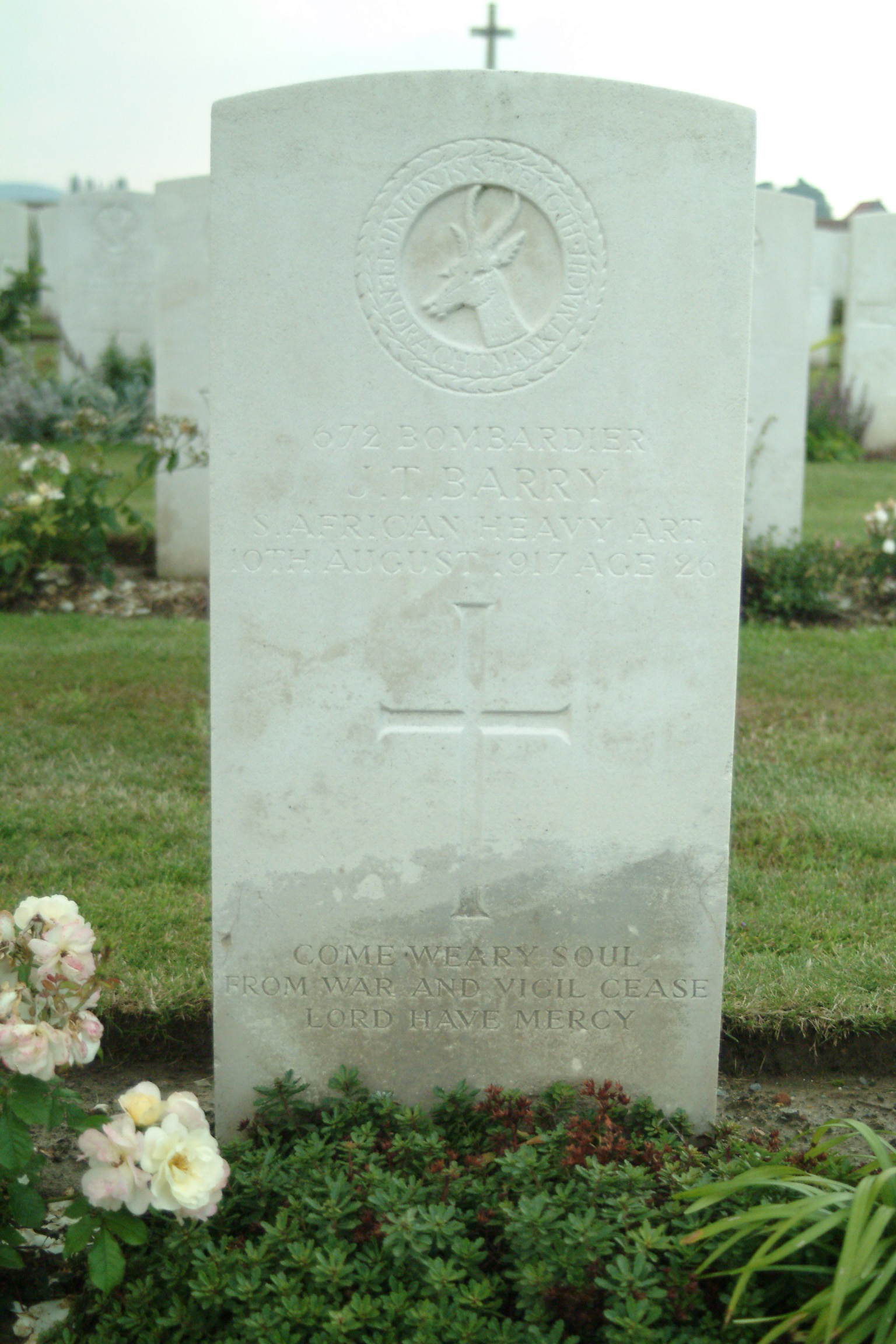 Son of Dirk and Mary Barry, of Zeerust, Transvaal, South Africa. On Cape Town "Company Gardens" Artillery Memorial