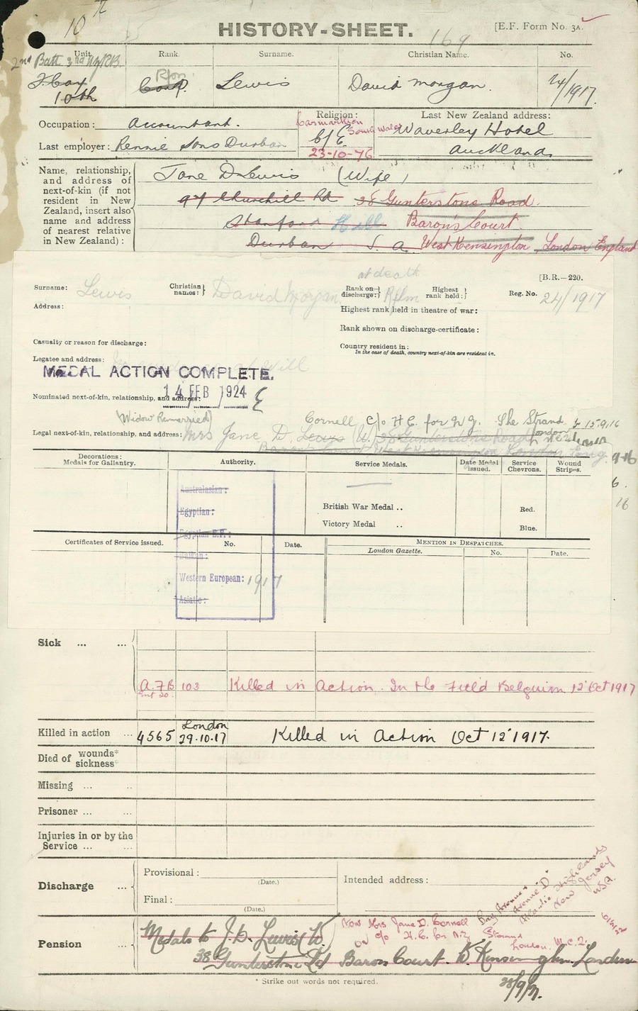 Son of David Lewis; husband of Jane Dorothea Cornell (formerly Lewis), of 234, Boulevard, Scarsdale, New York, U.S.A., formerly of 97 Churchill Road, Stanford Hill, Durban, South Africa