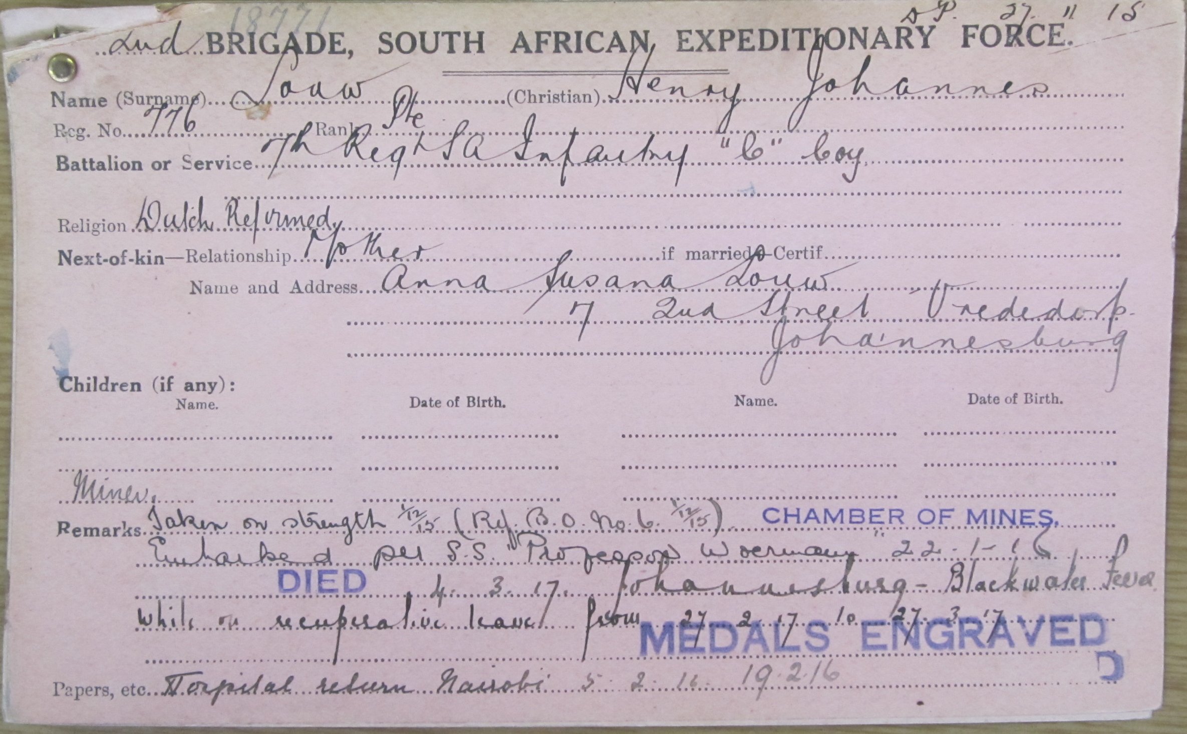 Son of Anna Susana Louw, of 7, 2nd Street, Vrededorp, Johannesburg