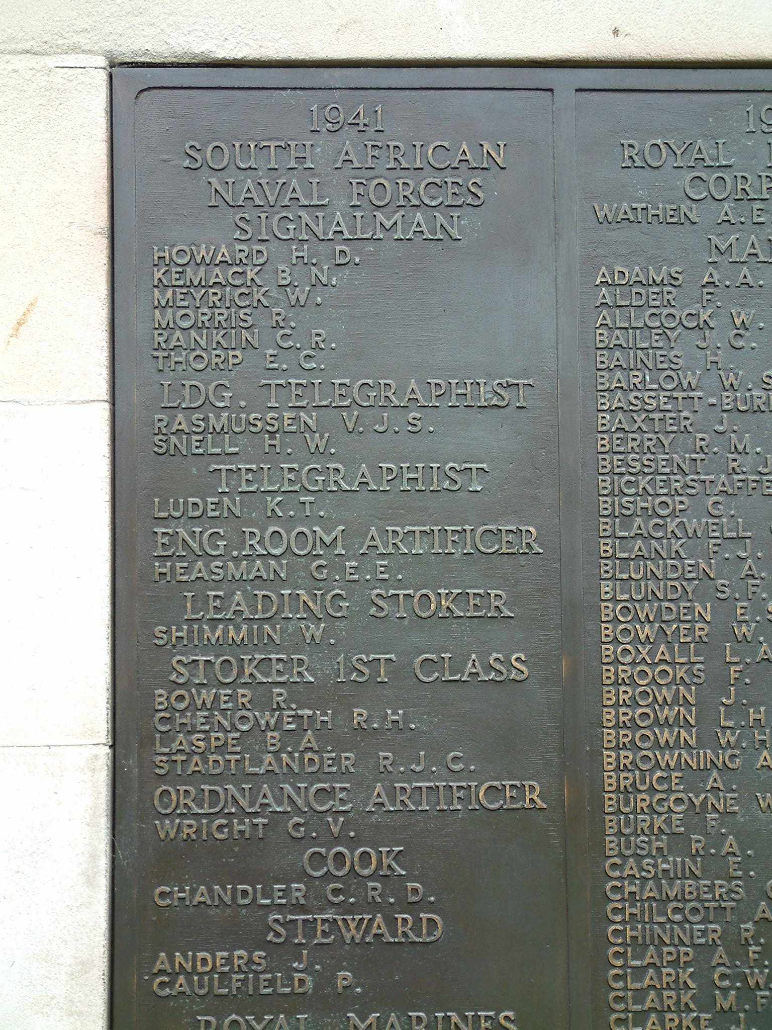 Son of Mr. and Mrs. H. H. T. Luden, of Maitland, Cape Town, South Africa. From Robben Island, South Africa. On Robben Island Garrison Church Memorial