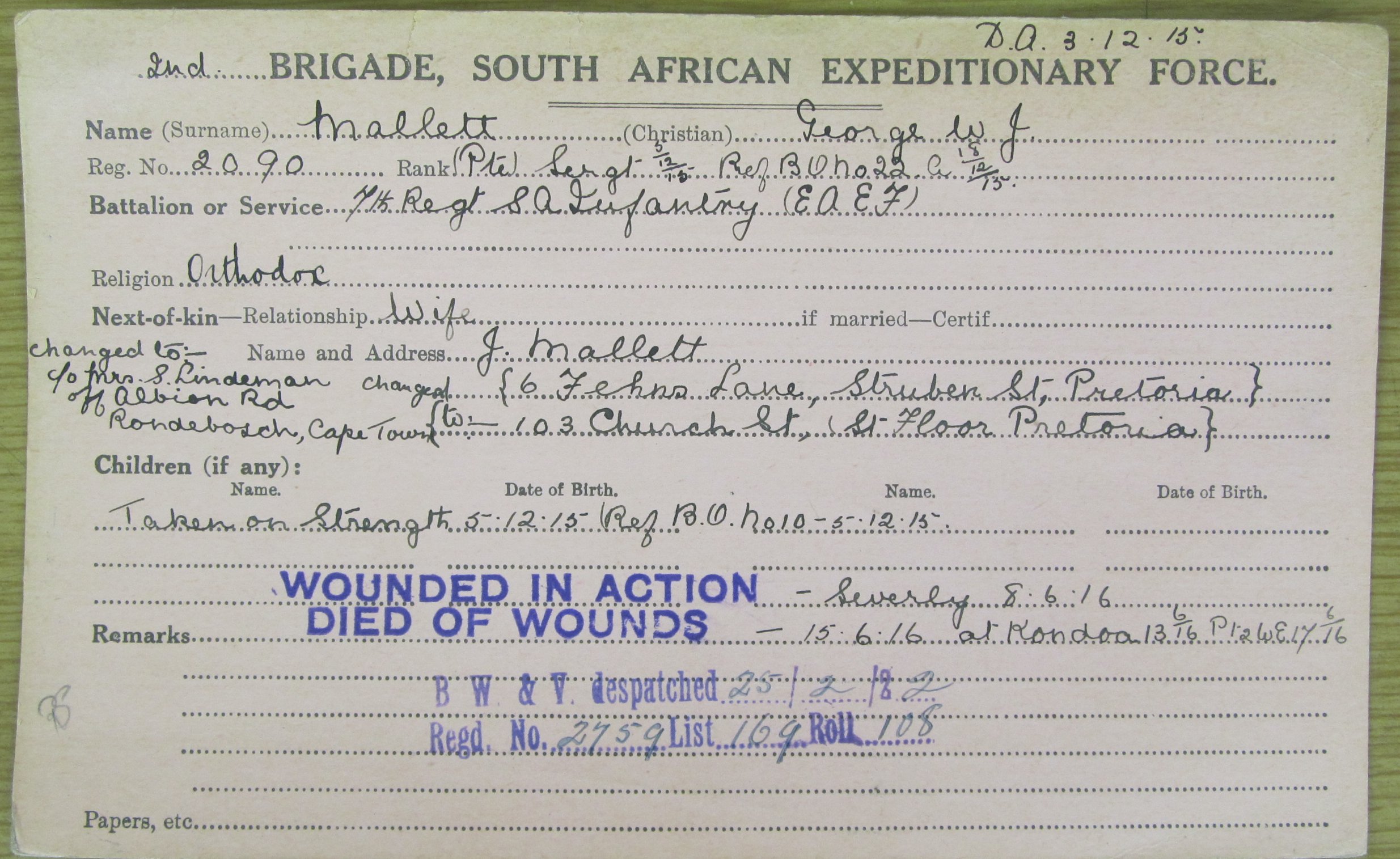 Husband of Mrs. Johanna Mallett, of Rondebosch, Cape Town. Born England. An upholsterer. |