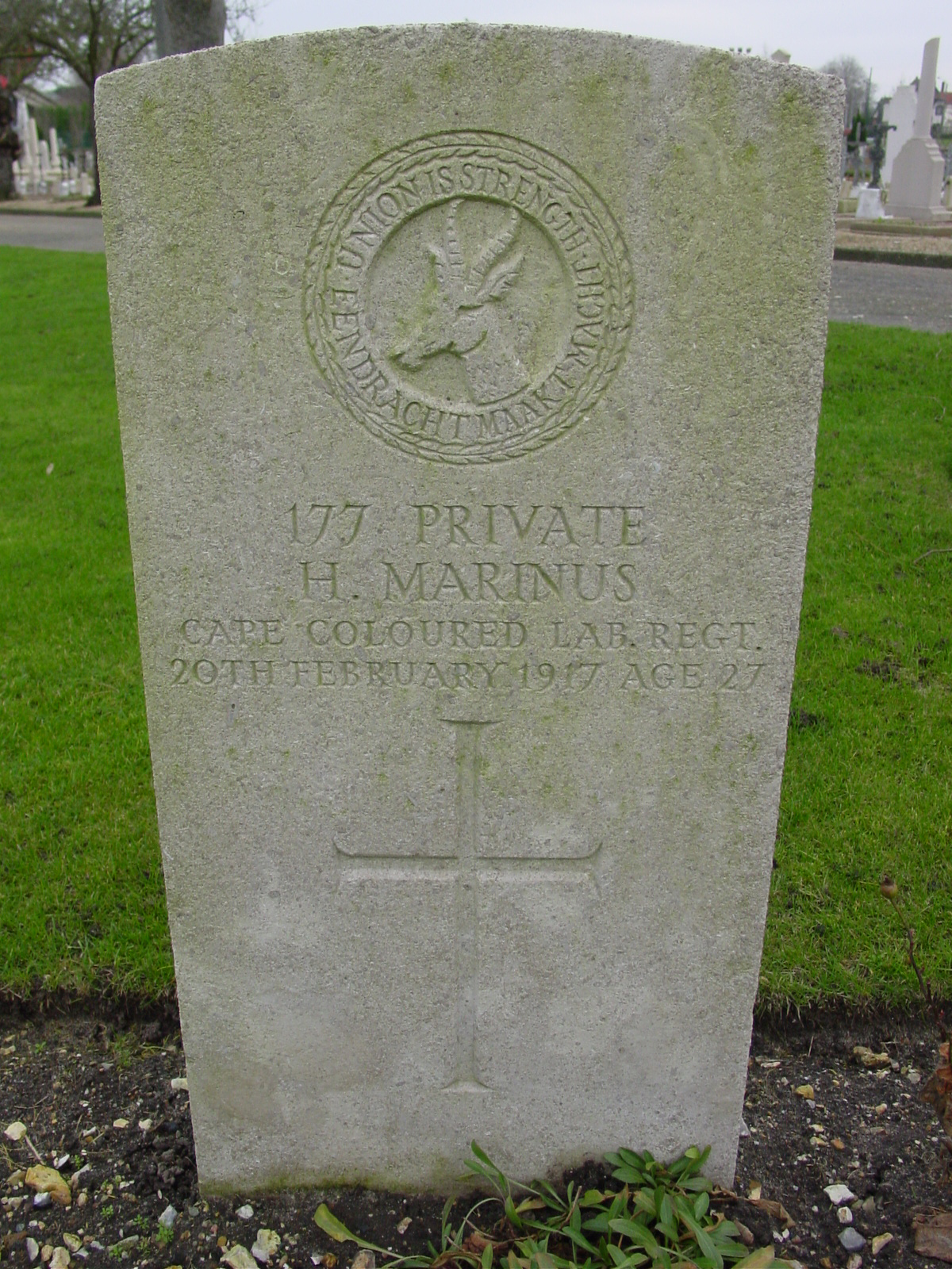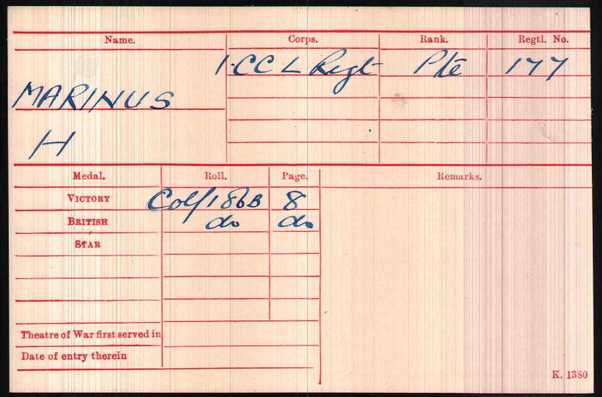 Son of Henry and Frances Marinus, of Salt River, Cape Province. Attested 17-July-1916 |