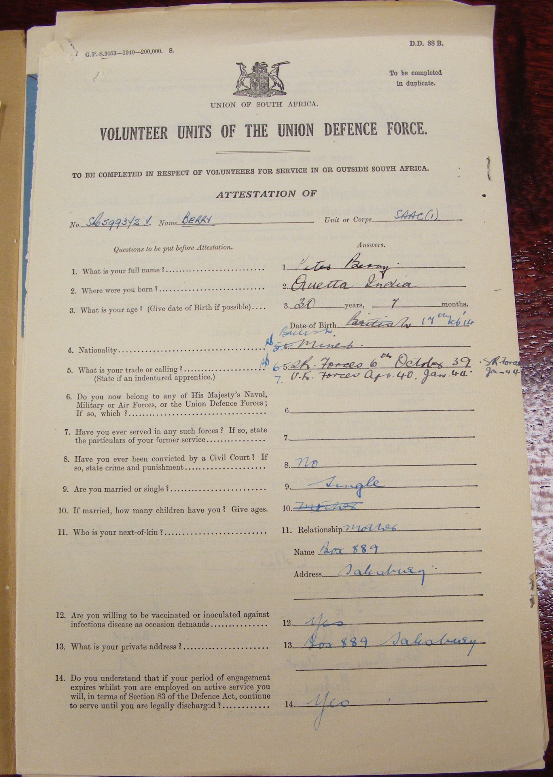 Son of Leslie and Lilian Berry, of Fort Victoria, Southern Rhodesia. ***Jewish |