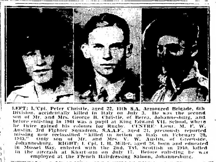 Son of Hendry H. and Emily J. Miller; husband of Leonora D. C. Miller, of Mayfair West, Johannesburg, Transvaal, South Africa. |