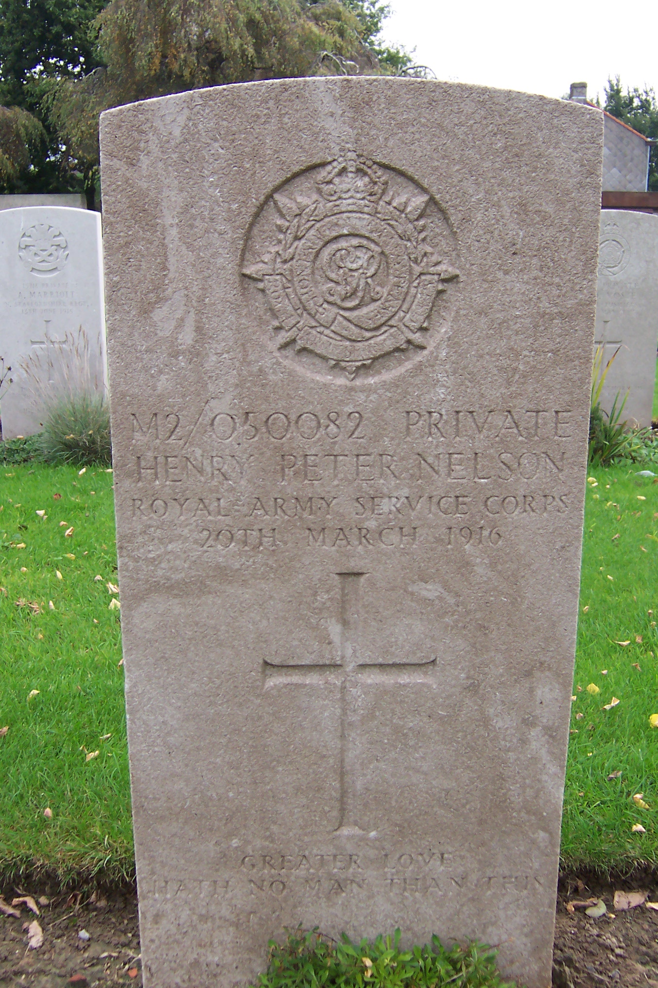 Son of David and Elizabeth Nelson, of Kimberley, South Africa; husband of Florence Ada Nelson, of 12A, Free State Rd., Beaconsfield, Cape Province, South Africa. A motor driver