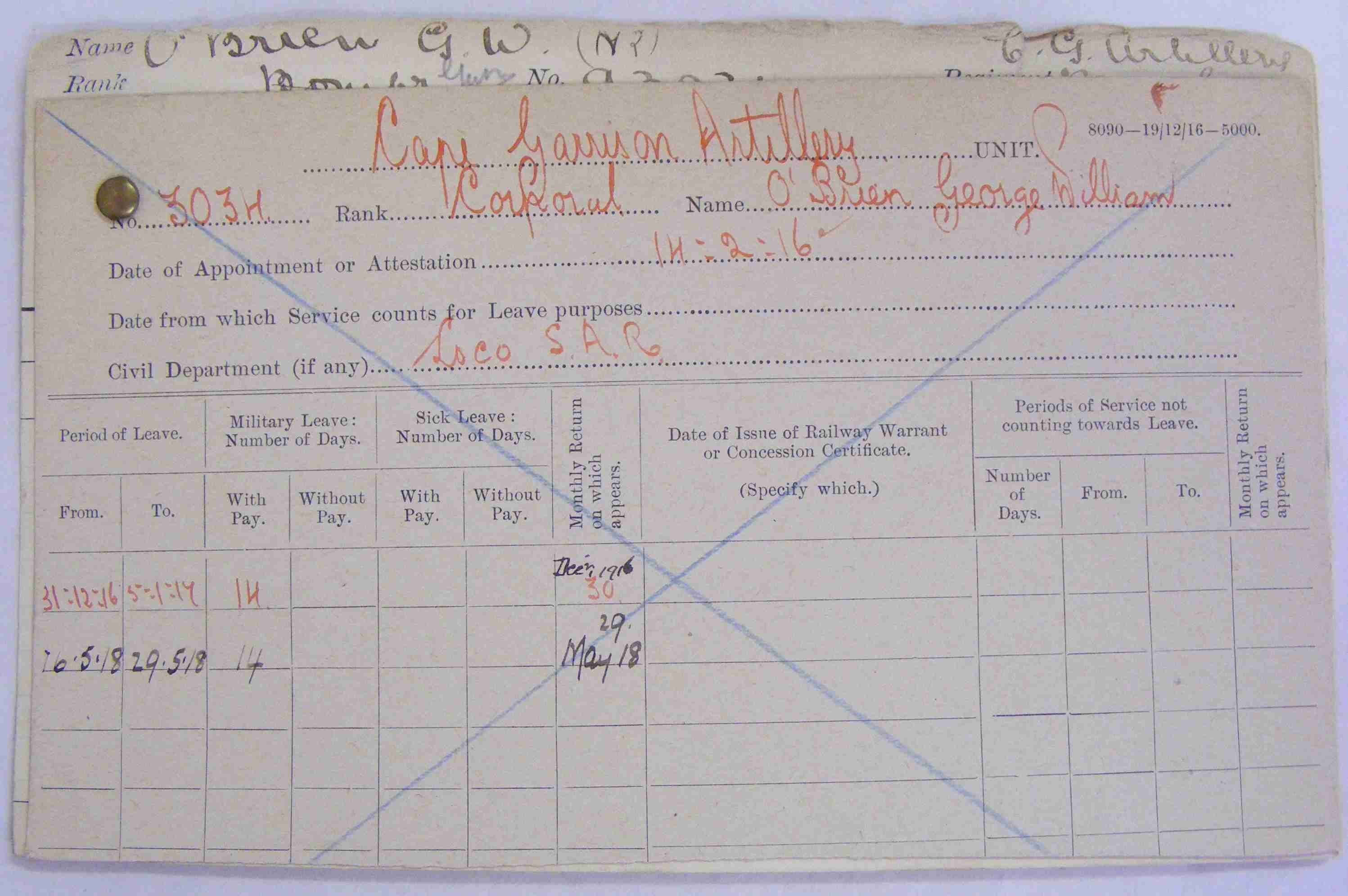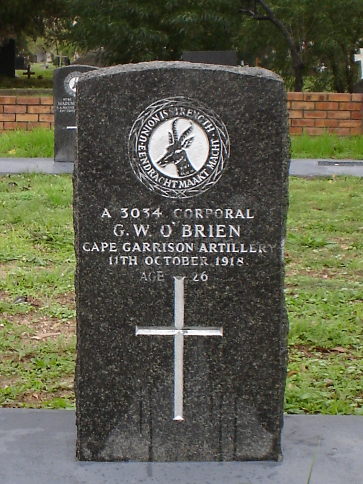 Son of Henry O'Brien, of 10, Park Terrace, London Rd., Observatory, Cape Province.