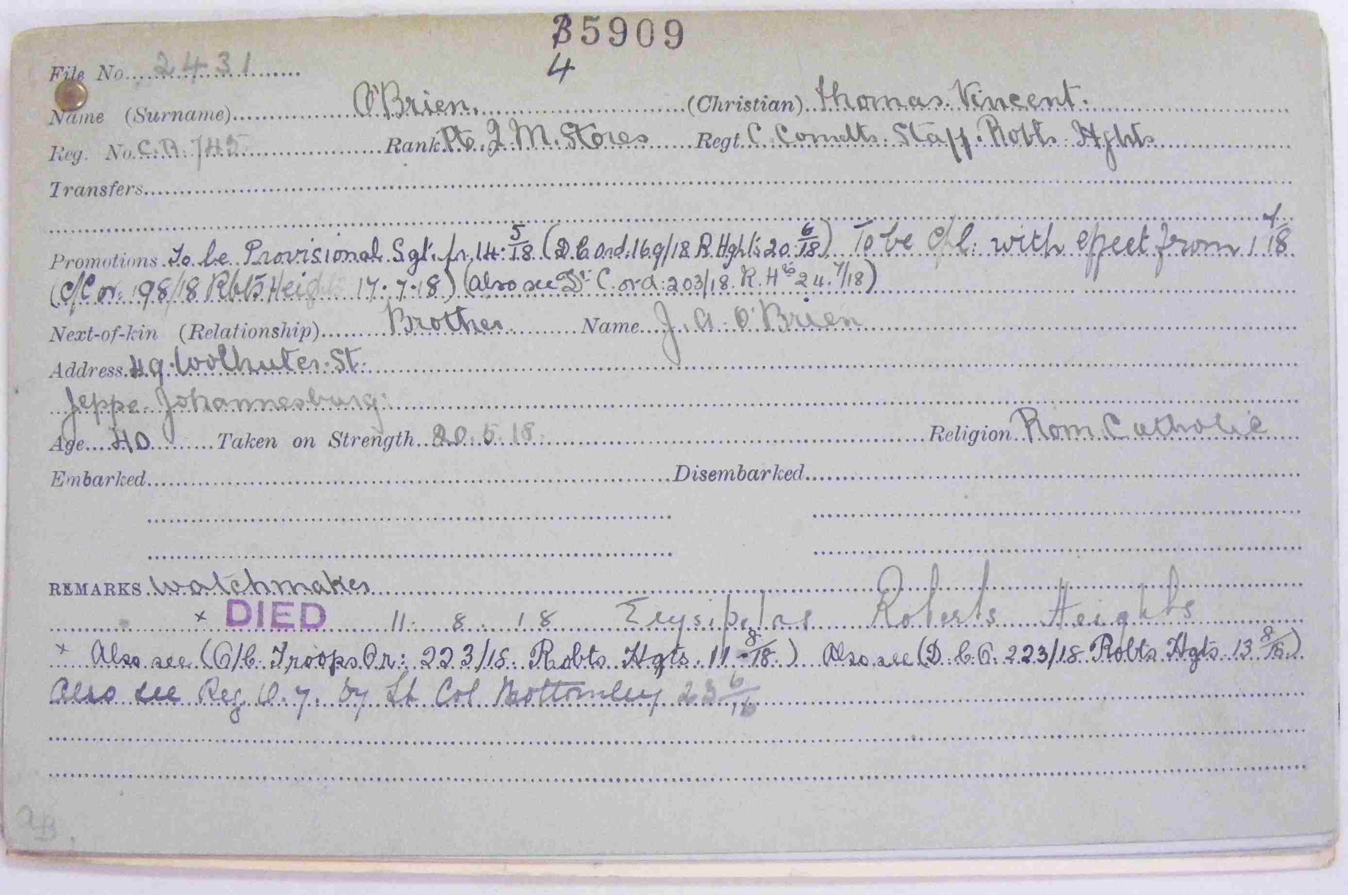 Brother of Mr. J. A. O'Brien, of Jeppes, Johannesburg