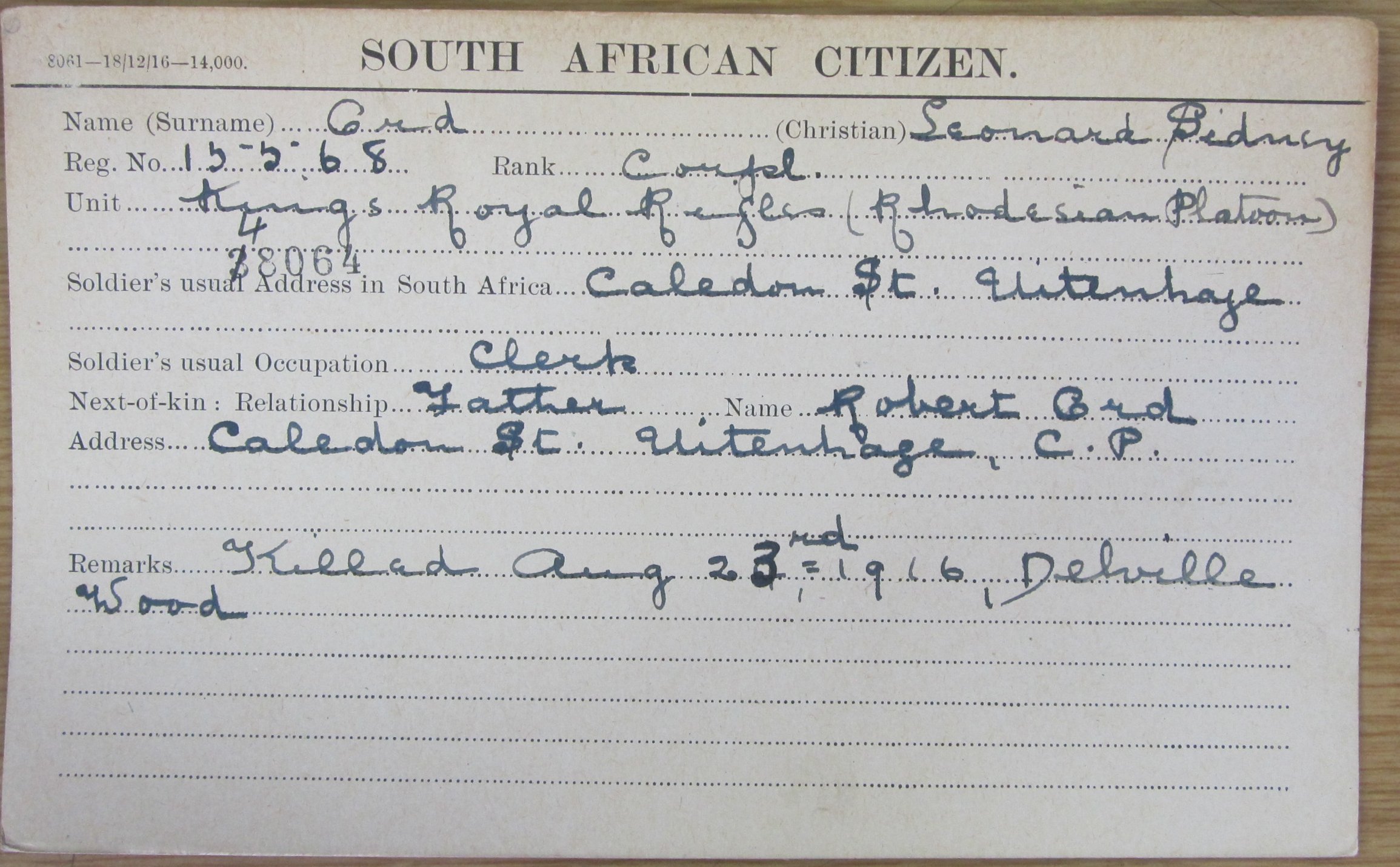 Son of Robert Ord, of Uitenhage, Cape Province. ref. South African Roll of Honour 1914-1918