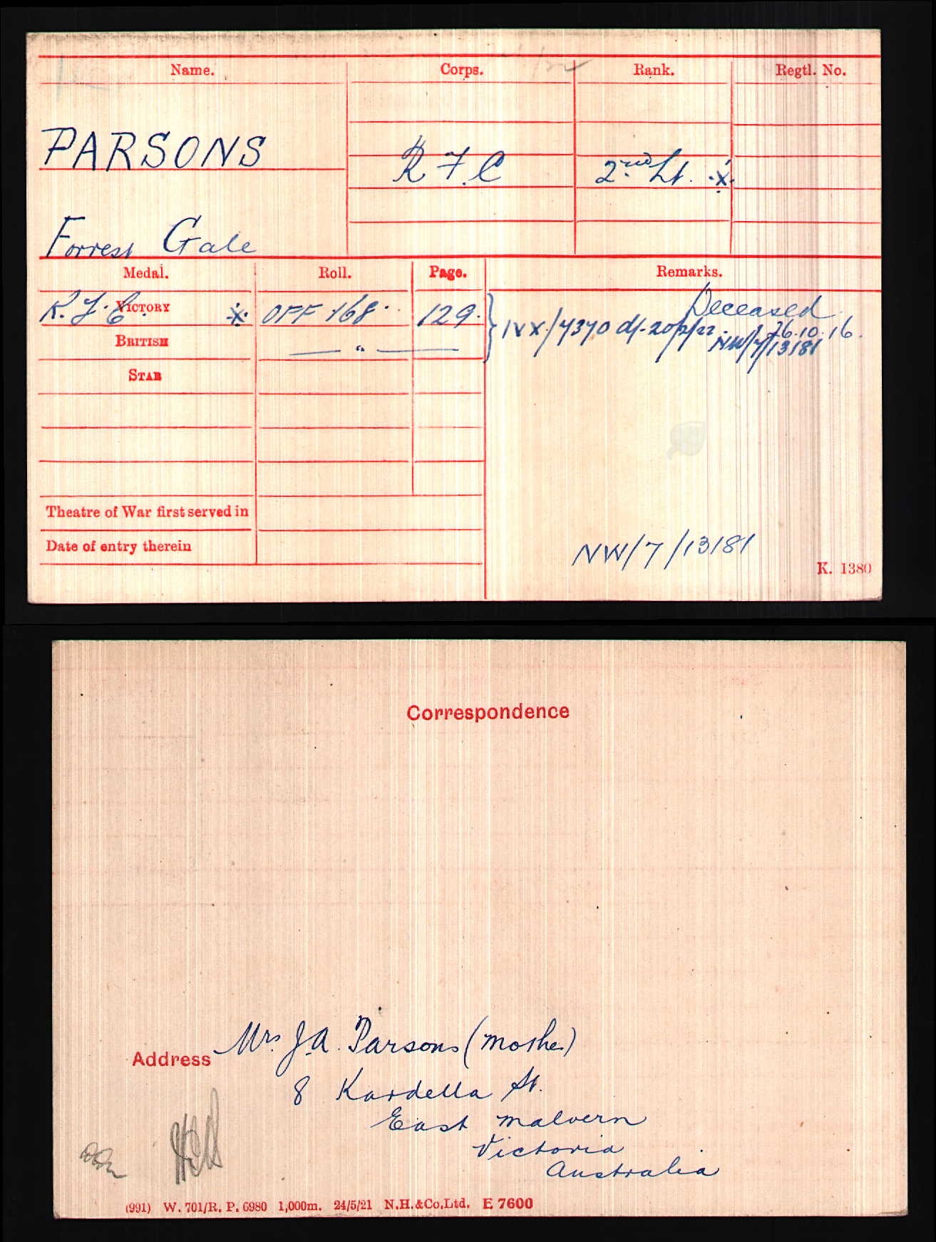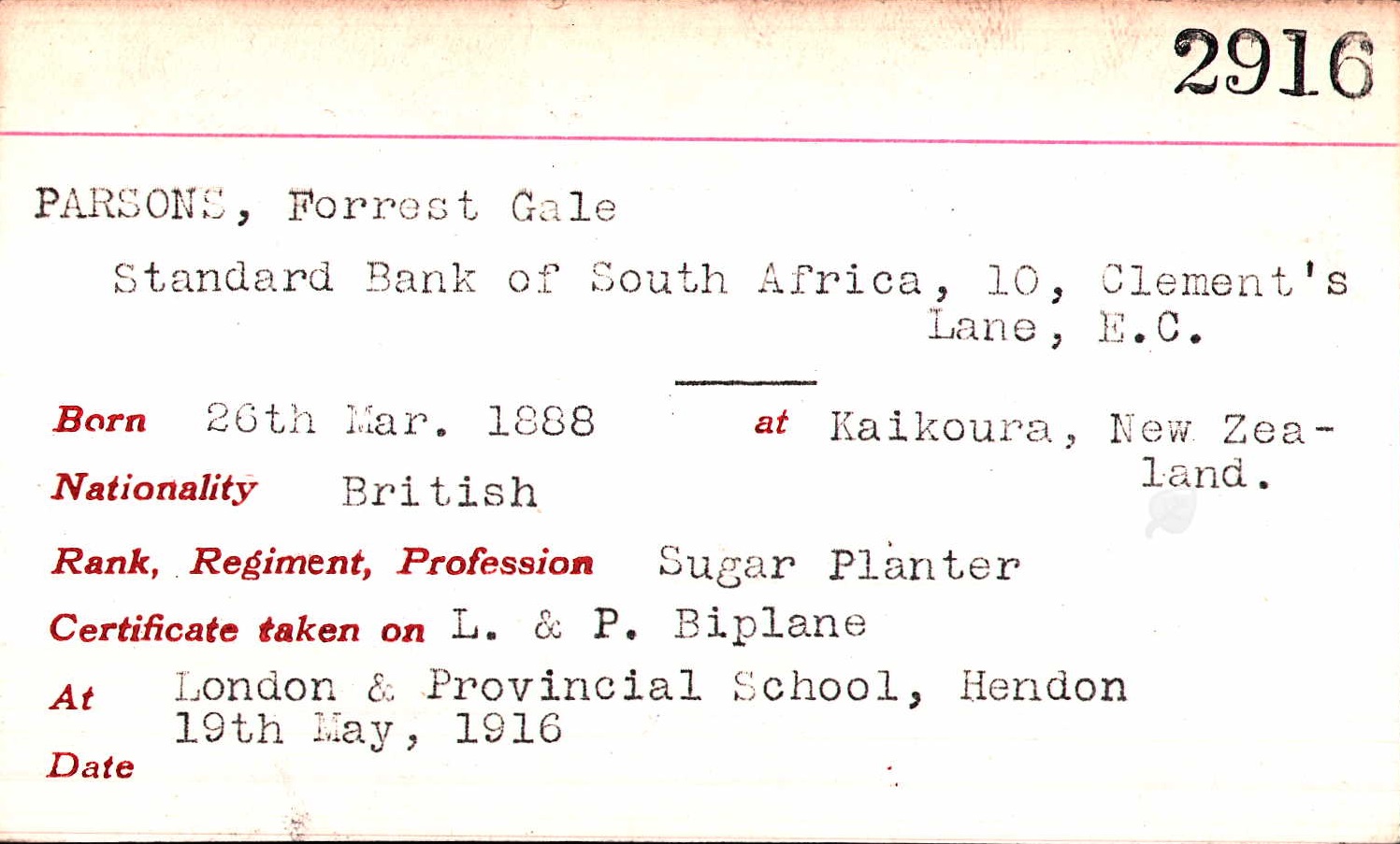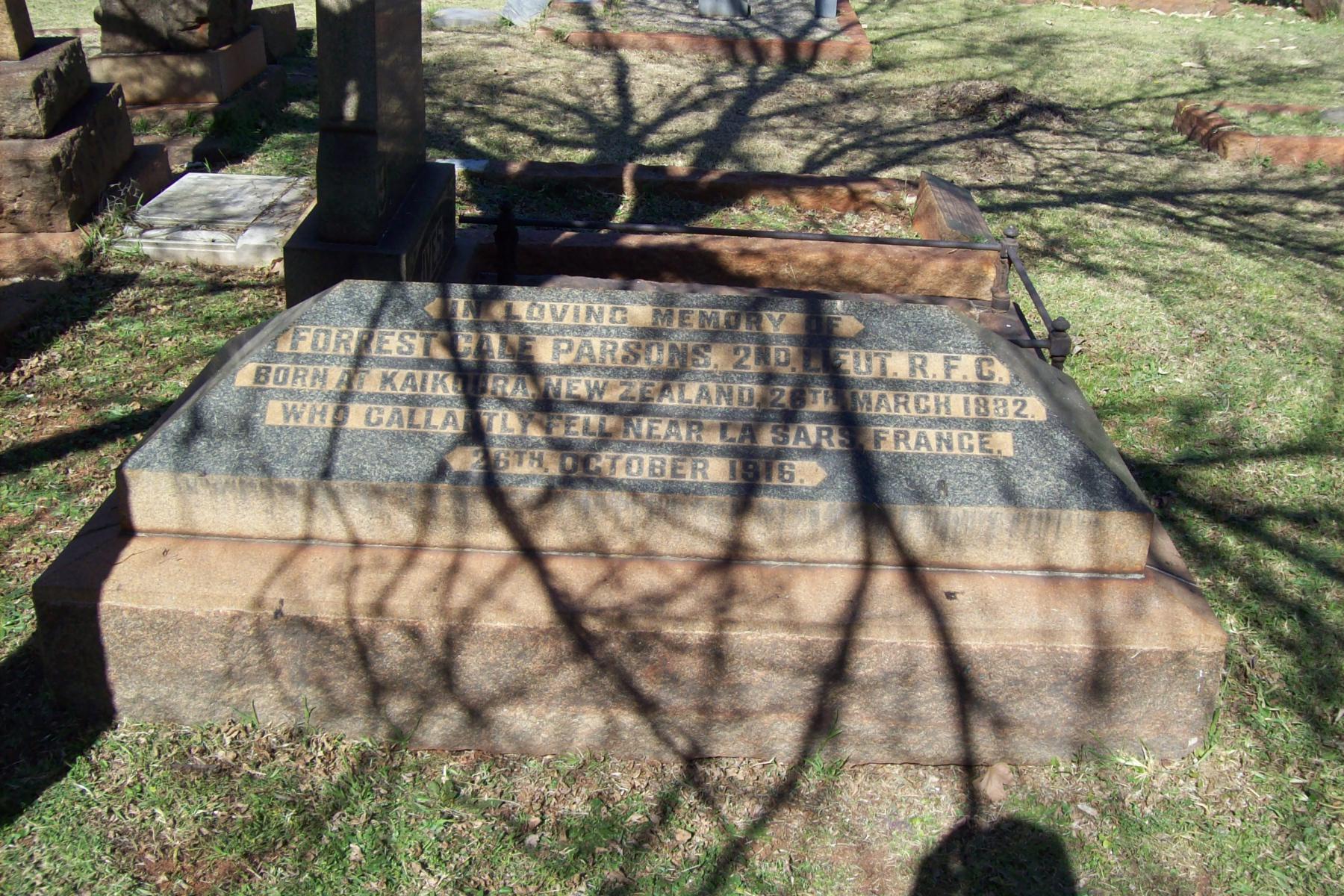 Born at Kaikoura, New Zealand on 26 March 1882. Commemoration stone in Johannesburg (Brixton) Cemetery |