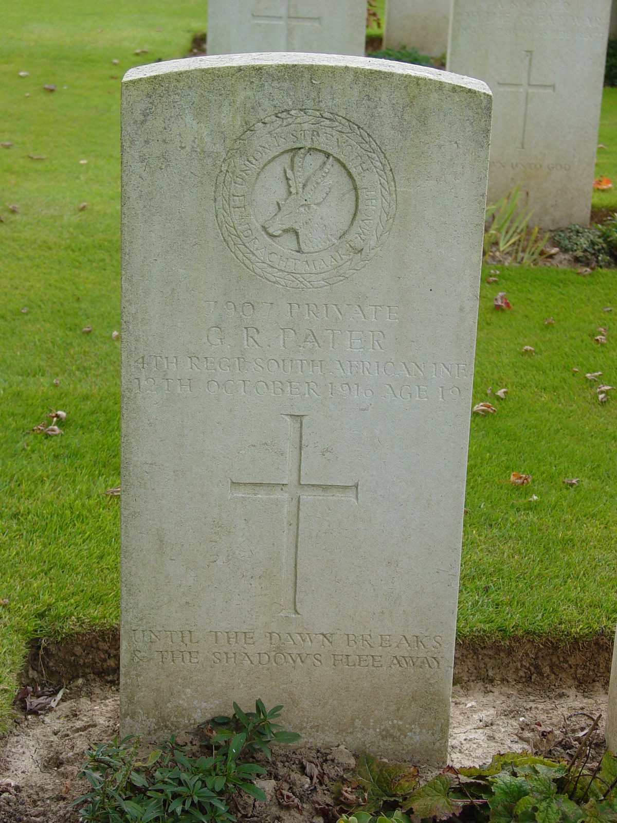 Son of John Raymond Pater and Belinda Rosalie Pater, of "Toolanji," Eildon Rd., Kensington, Transvaal. Native of Melbourne, Australia. Attended Jeppe High School for Boys. Entered the School in 1908 and left in 1912. On Jeppe High School for Boys Roll of Honour