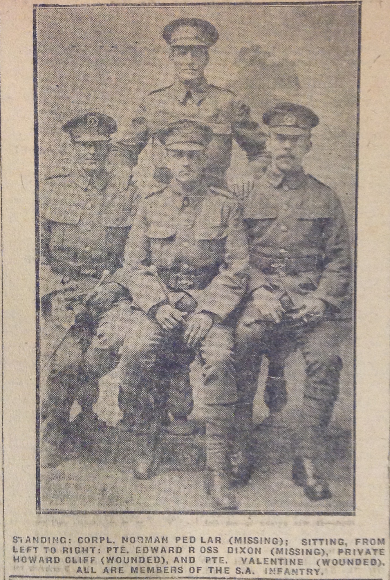 Son of George Henry and Elizabeth Jane Pedlar, of "Lucknow Farm", P.O. Mamaghodi, via Postmasburg, Kuruman, Bechaunaland. Also served in German South West Africa.