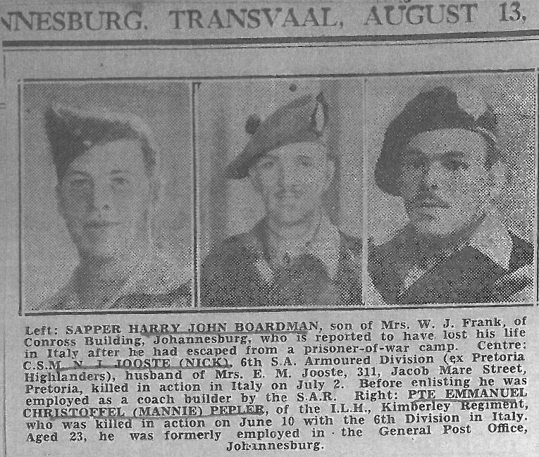 Son of William J. F. and Rosie Christiana Boardman, of Doornfontein, Johannesburg, Transvaal, South Africa. Born Johannesburg. A stone mason by profession