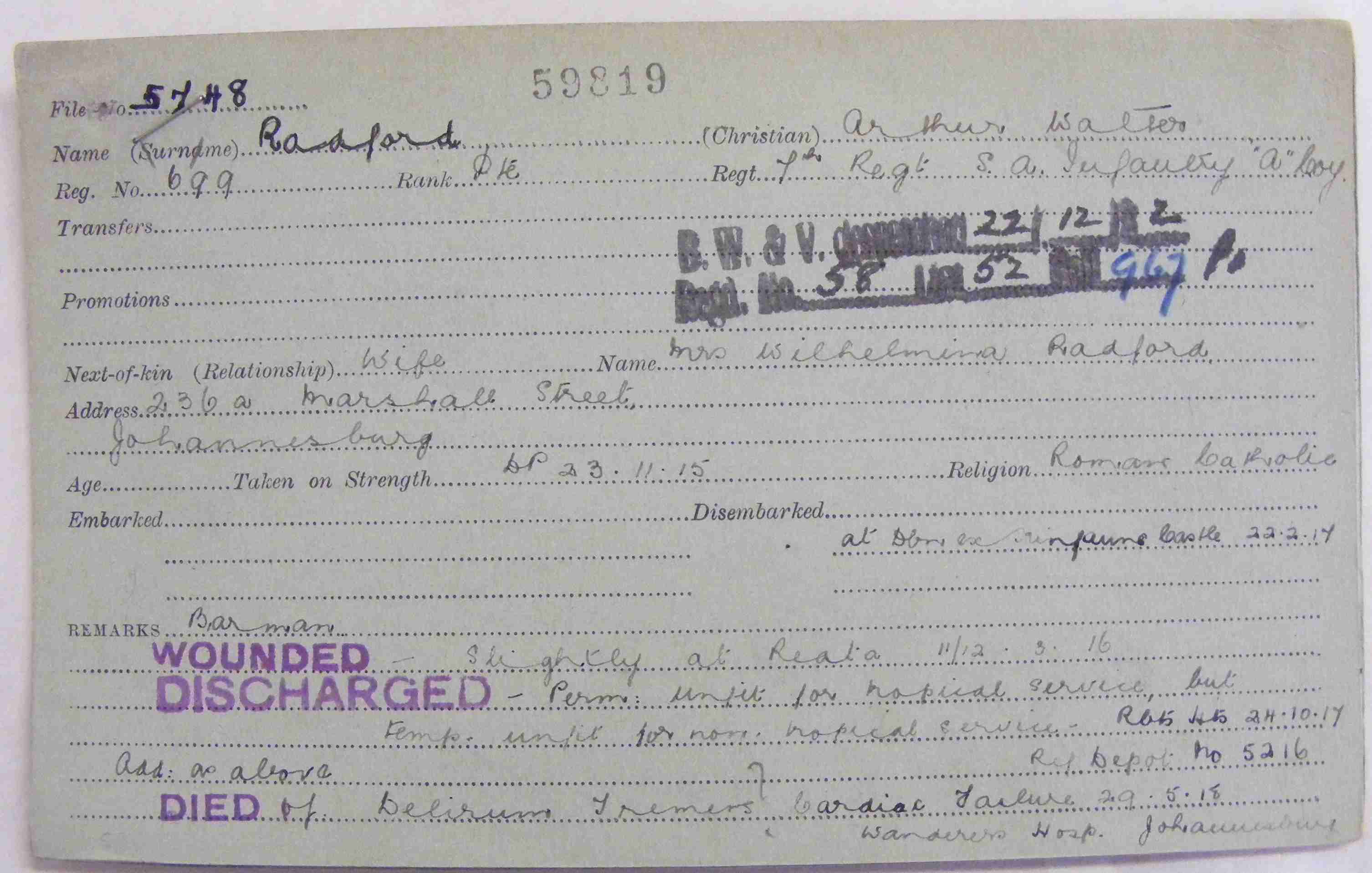 Husband of Mrs. Wilhelmina Radford, of Johannesburg |