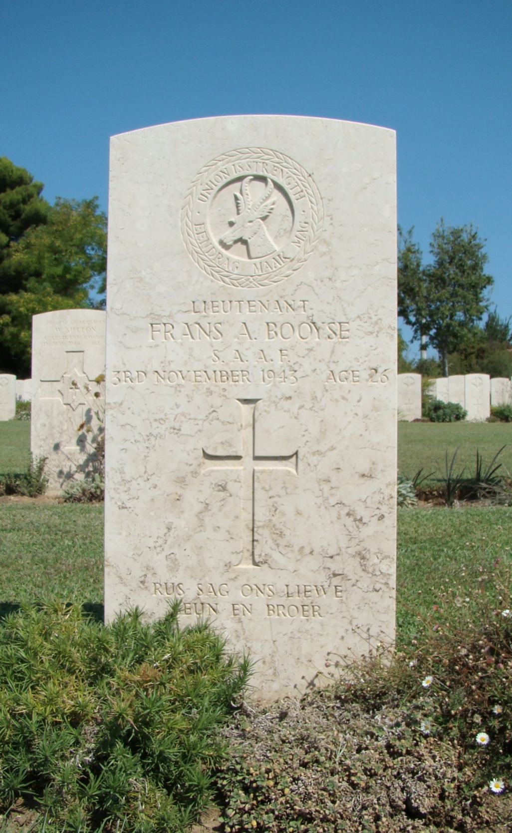 Son of Jacob Jacobus and Christina Hester Booyse, of Brakpan, Transvaal, South Africa. |
