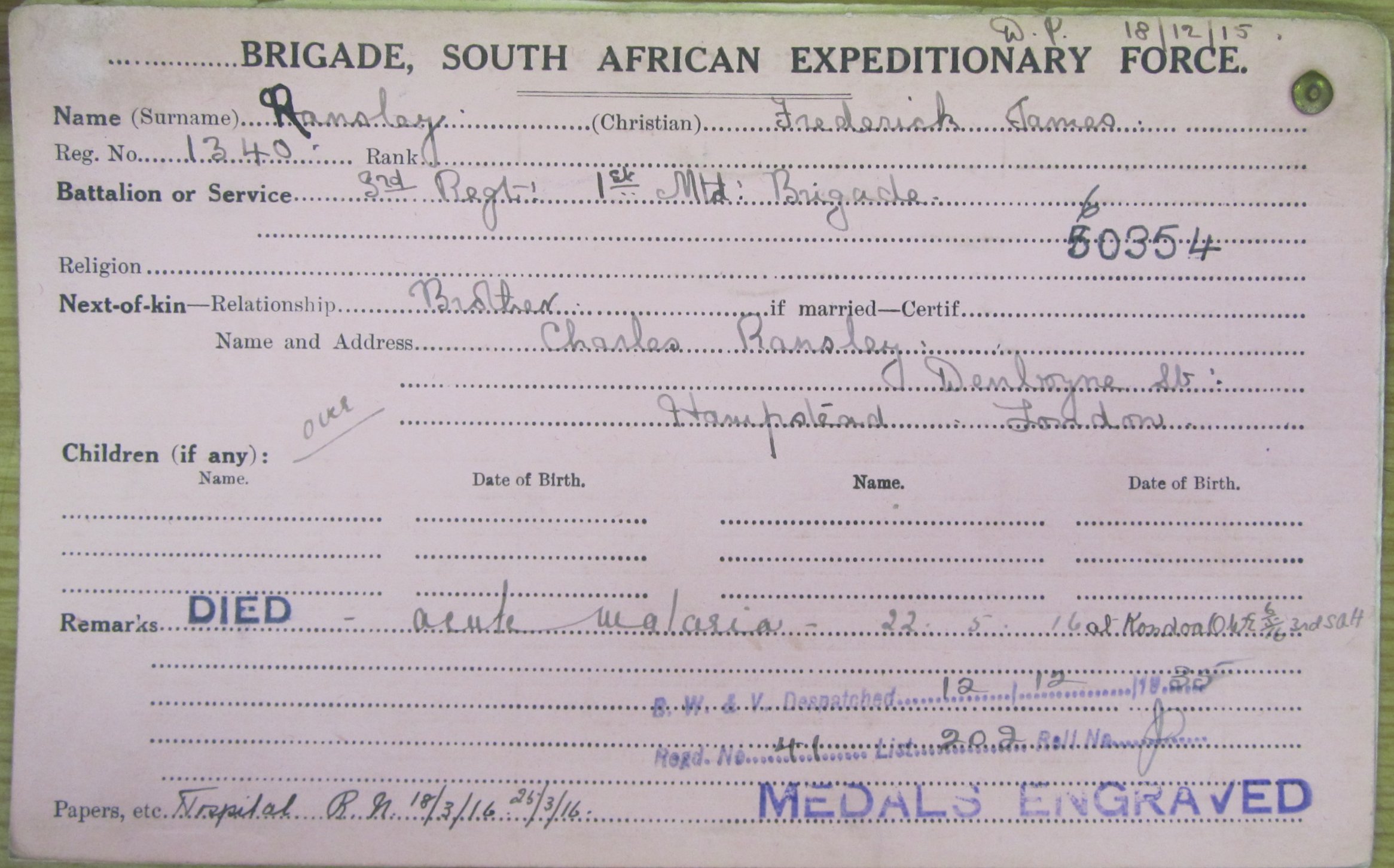 Brother of Charles Ransley, of Denboyne Street, Hampstead, London