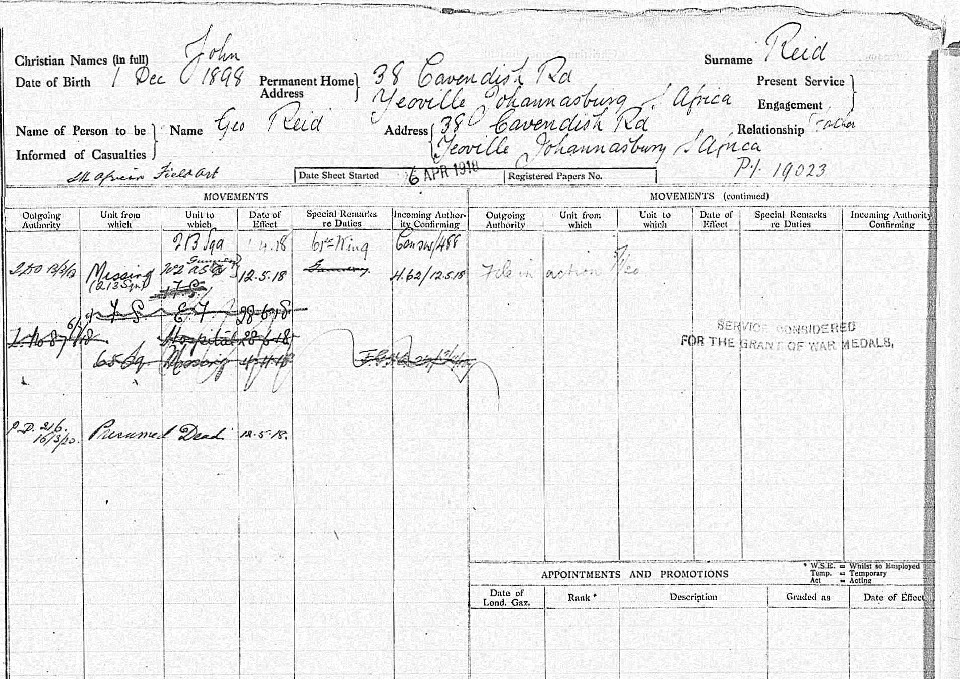 Son of George and Jean Reid, of 38 Cavendish Road, Yeoville, Johannesburg, South Africa. Commemoration stone in Johannesburg (Braamfontein) Cemetery