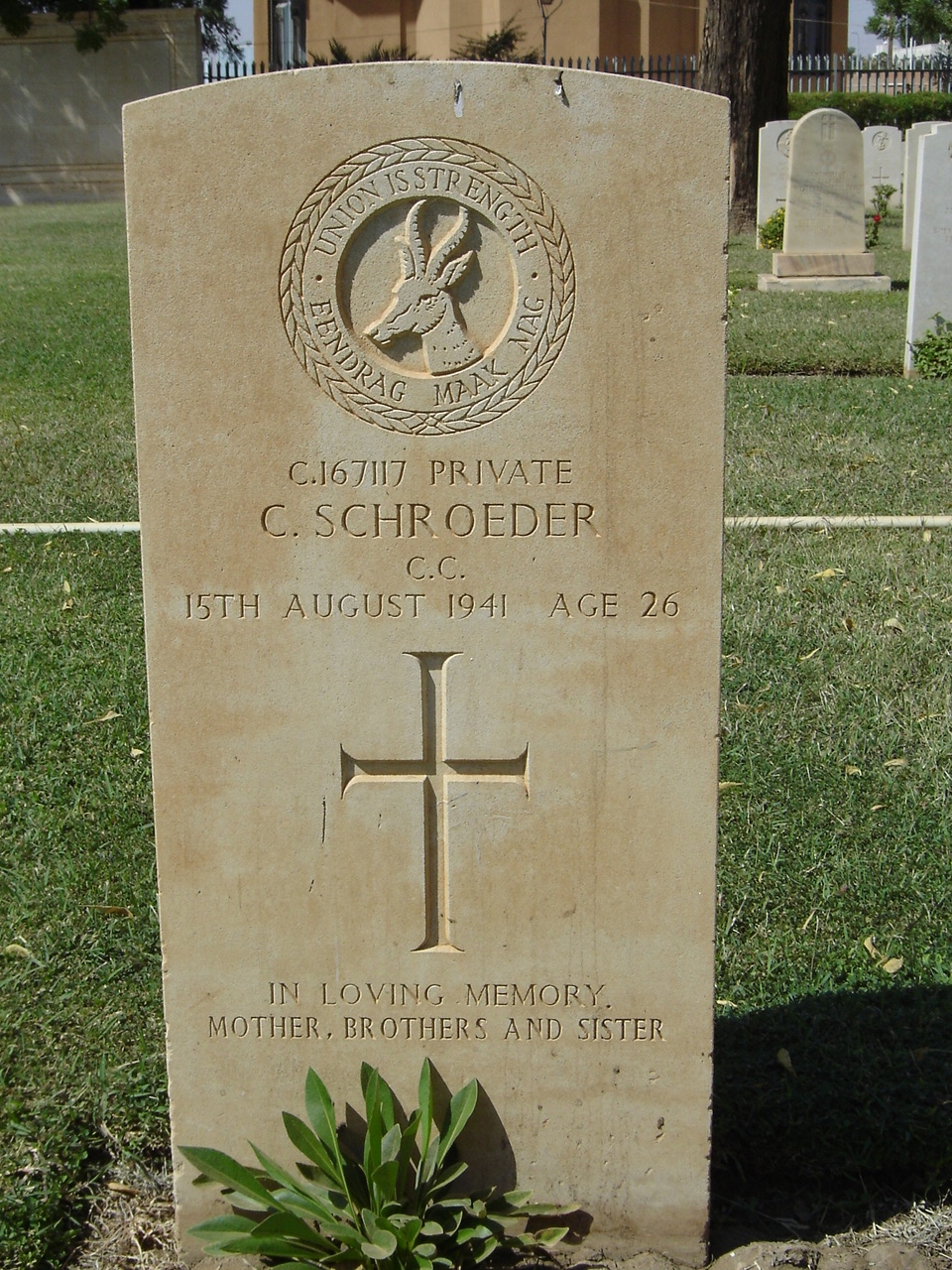 Son of Alexander and Annie Schroeder, of Geneste Street, Laingsburg, Cape Province. |