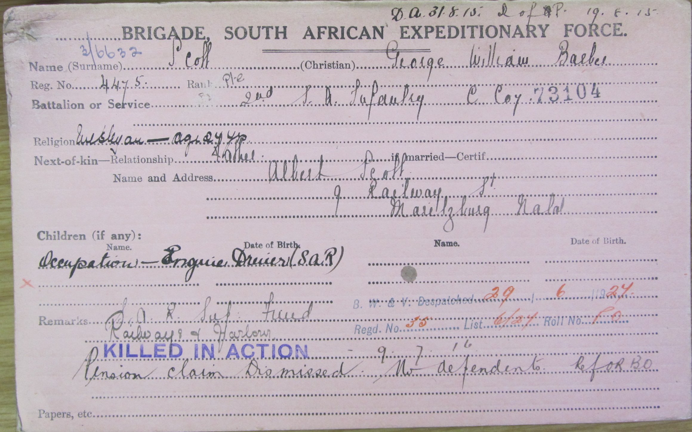 Killed in action, when three companies of the 2nd S.A.I. occupied Bernafay Wood