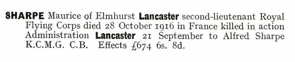 Native of Lancaster, Lancs. ref. South African Roll of Honour 1914-1918 |