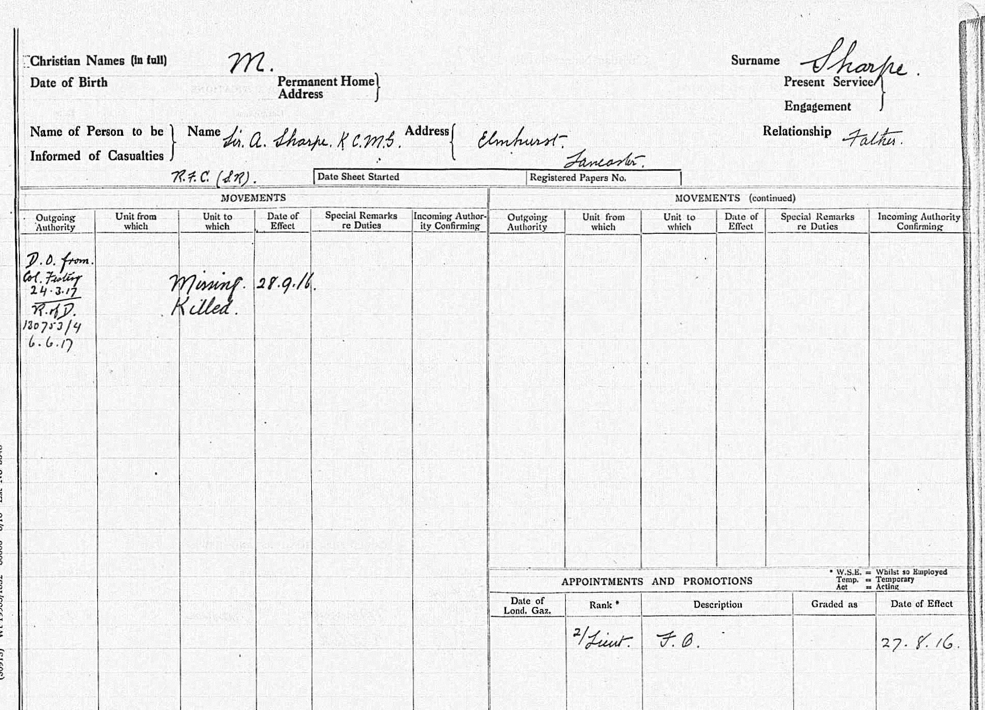 Second LieutenantOther Casualties of this Rank |