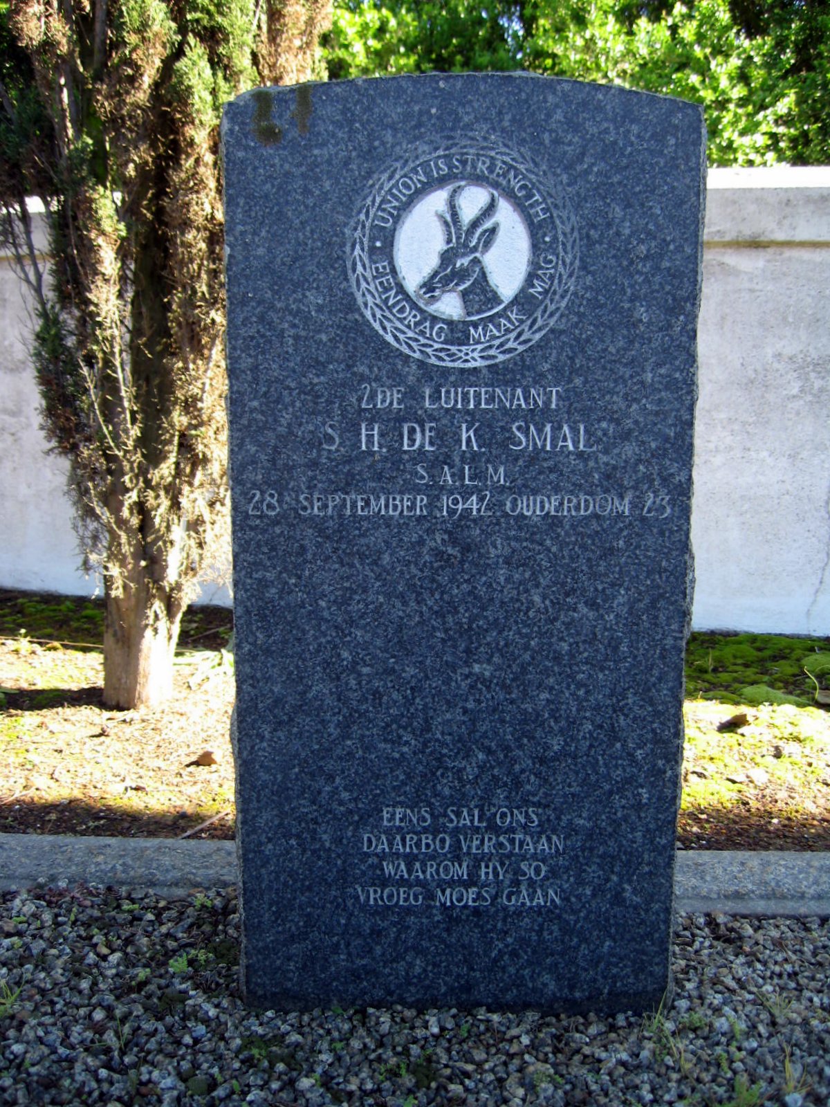 Son of Petrus Johannes Hermanus and Andrina Josephina Wilhelmina Smal, of Caledon, Cape Province. |