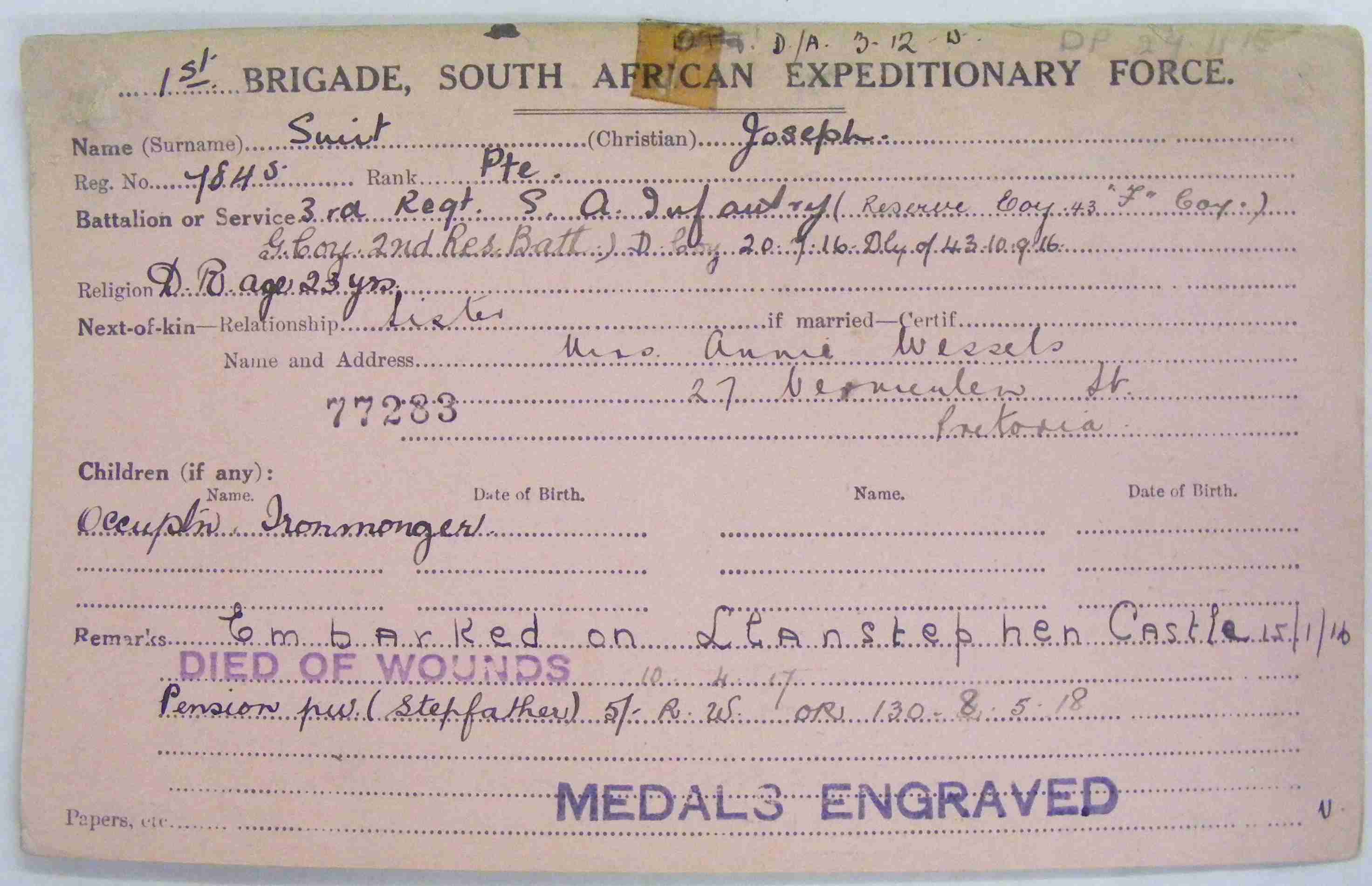 Died of wounds