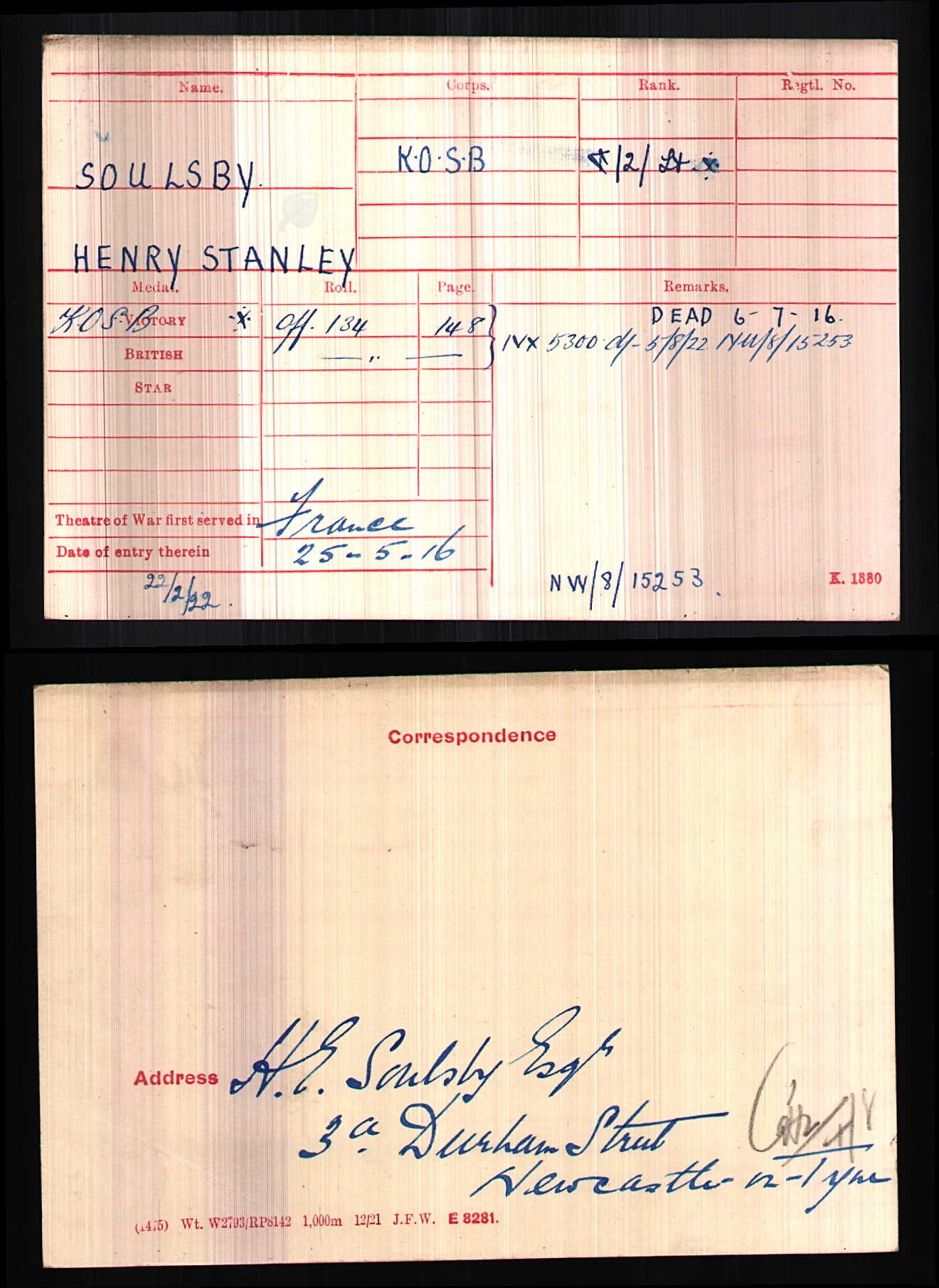 Son of Edwin Hay and Henrietta Eliza Soulsby. Husband of Ethel Soulsby. Born Newcastle Upon Tyne, Northumberland, England in 1887. ref. South African Roll of Honour 1914-1918