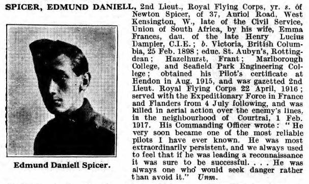 Son of Newton and Emma Frances Spicer, of Little Denstone, Parkstone, Dorset. Husband of Emma Frances Spicer. Born Victoria, British Columbia. Employed with civil service in South Africa. ref. South African Roll of Honour 1914-1918