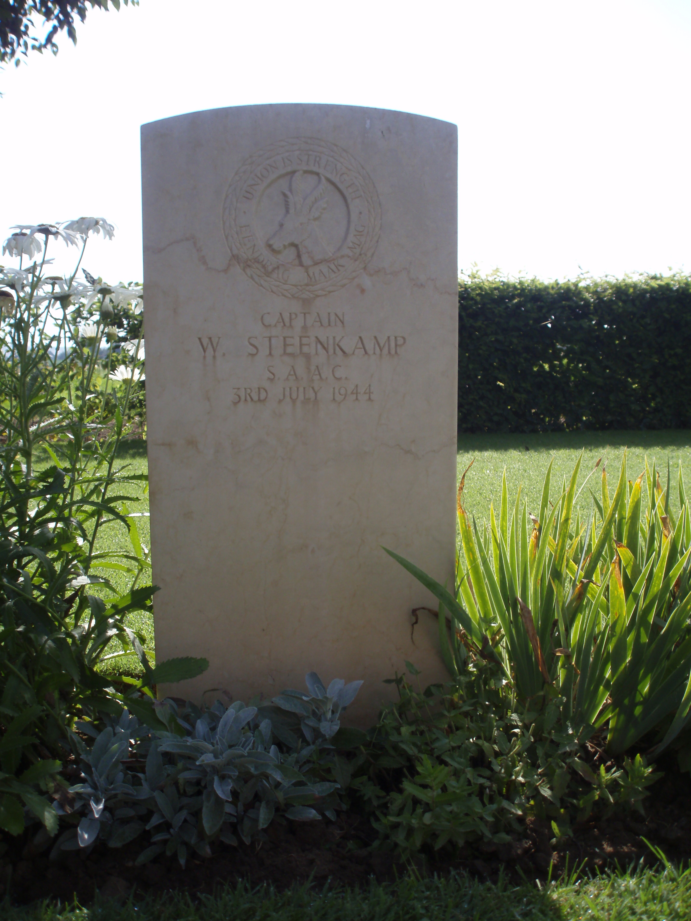 Son of Johannes Wilhelmus and Dorothea Maria Steenkamp. Husband of Peggy Penelope (nee Roux) Steenkamp, of Brakpan. Born Volksreust. A miner |