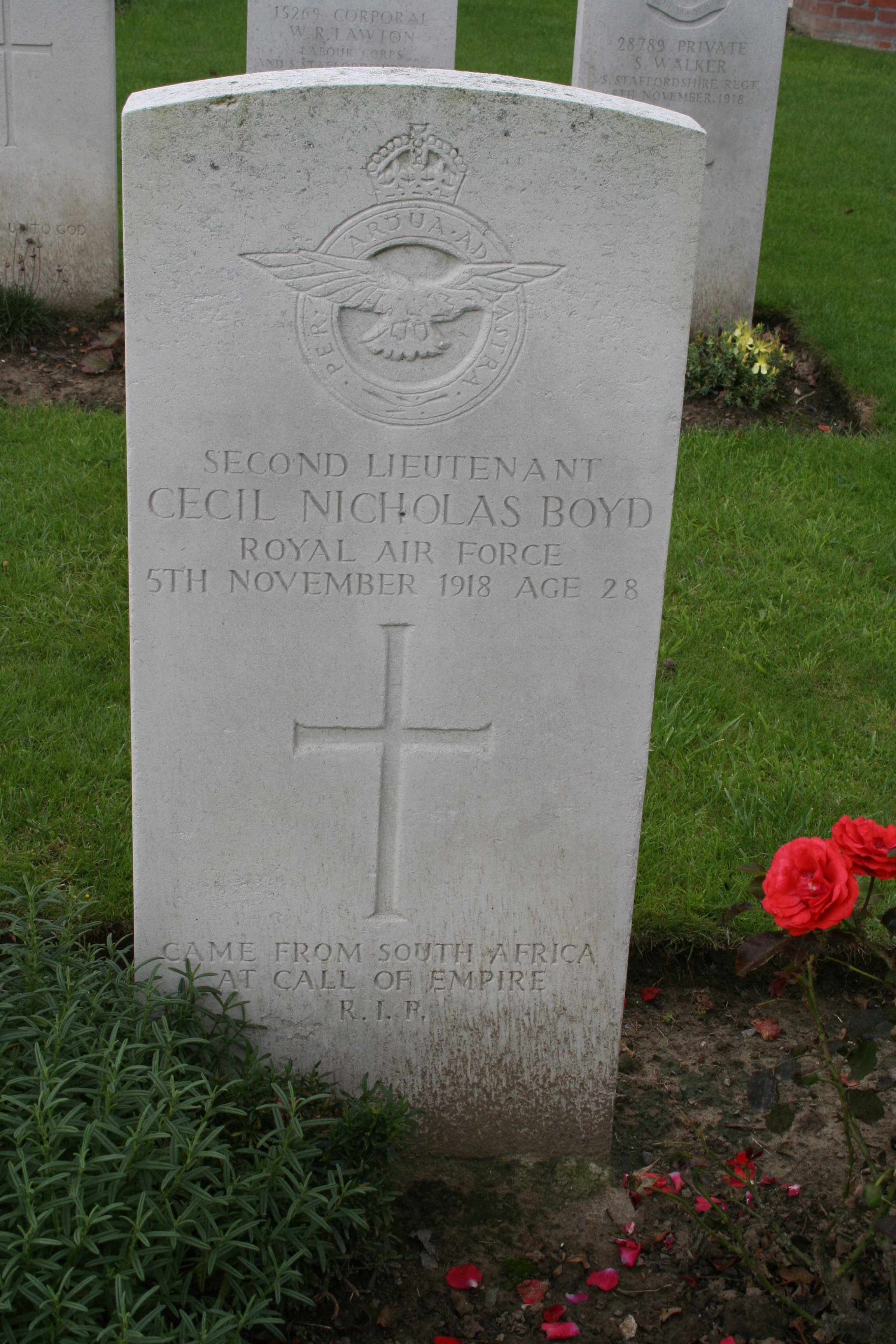 Son of Charles and Mary Boyd, of Durban, Natal, South Africa. ***Originally buried Jurbise village, Belgium. Buried there until 1958, when his remains were transferred to Cement House Cemetery