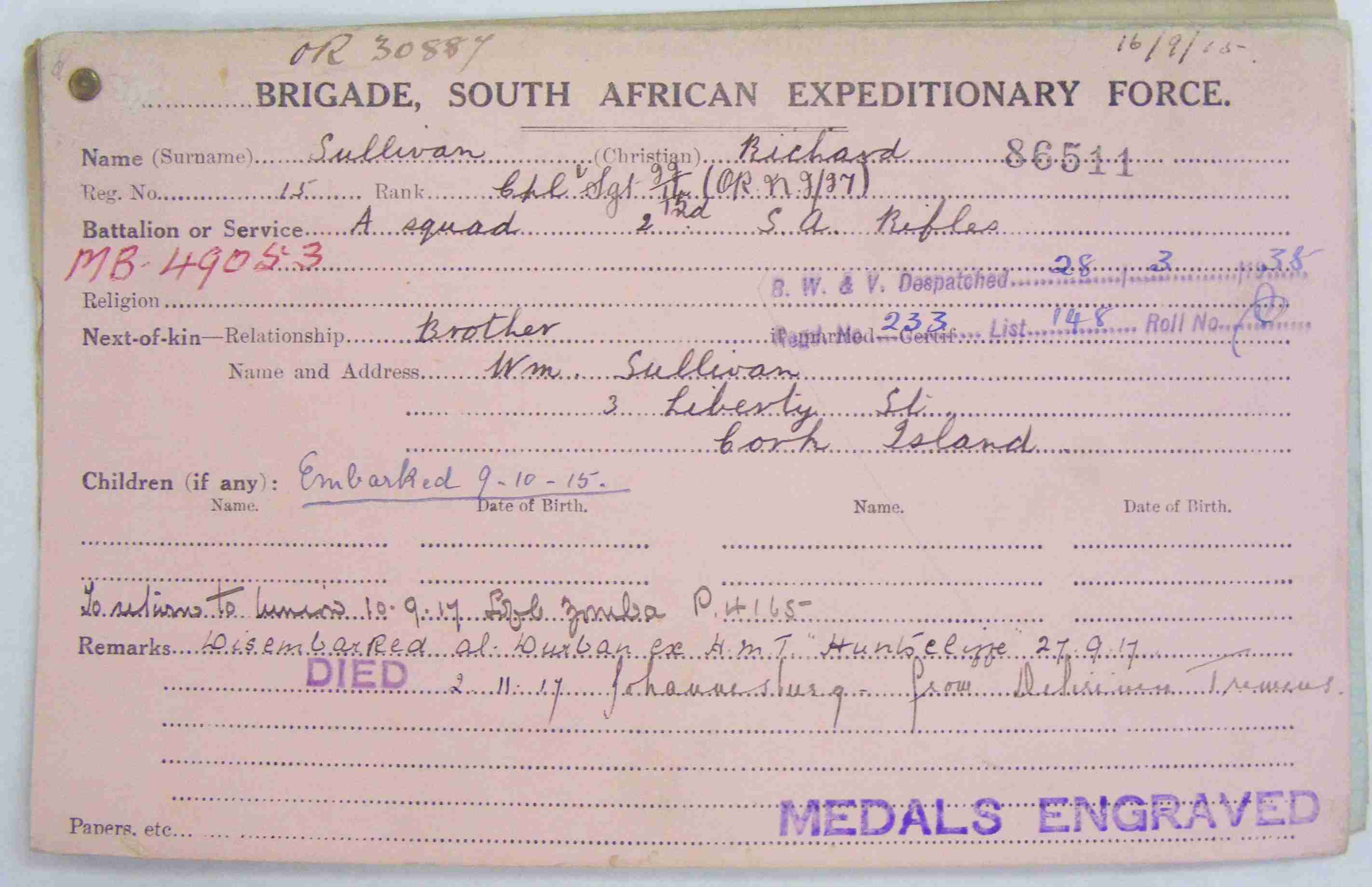 Son of Michael Sullivan. Brother of William Sullivan, of 3 Liberty Street, Cork, Ireland