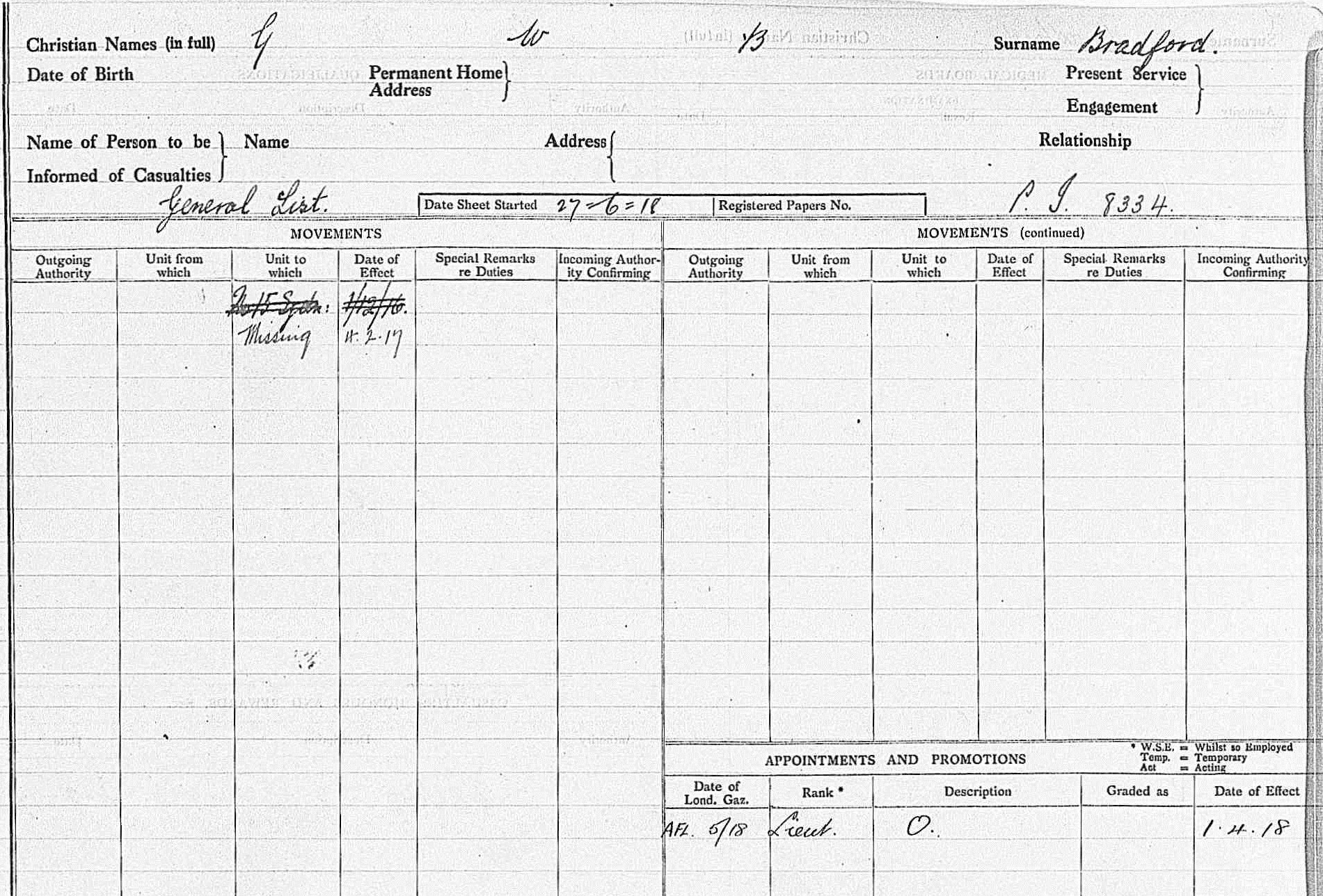 Killed in action, during an artillery observation patrol in Hebuterne-Puisieux sector (South of Pas-de-Calais)