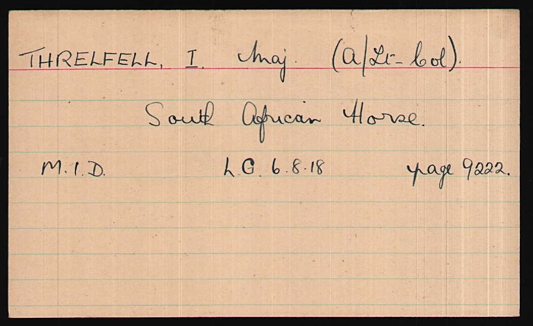 Son of Richard and Jane Threlfell. Brother of Miss Threlfell, of South Africa Military Hospital, Nursing Staff, Richmond, England. Attended King's School Worcester. Cricketer listed in the 1891 Martley Team
