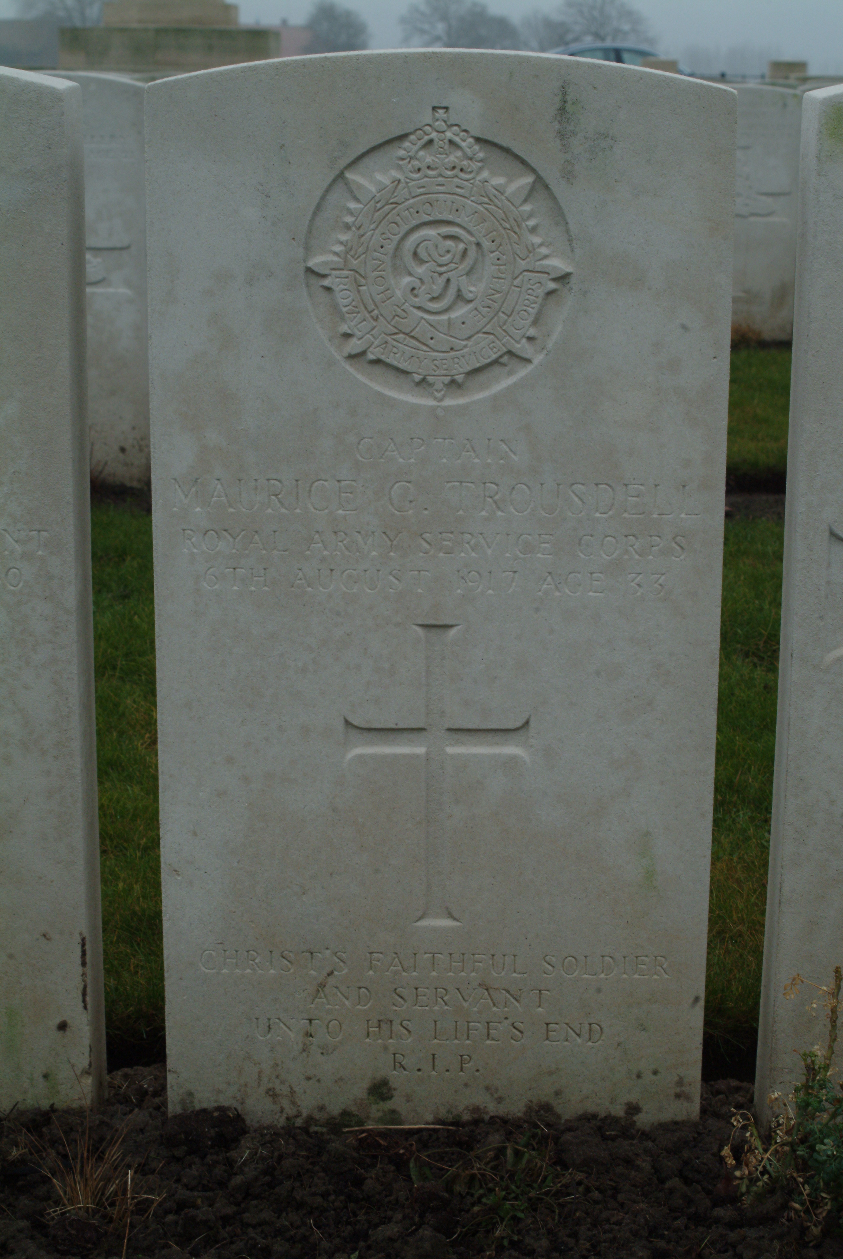 Son of William Blakeney Persse Trousdell (late 7th Hussars), and Ellen Philippa Louisa Trousdell, of Maryland, Maidstone. ref. South African Roll of Honour 1914-1918