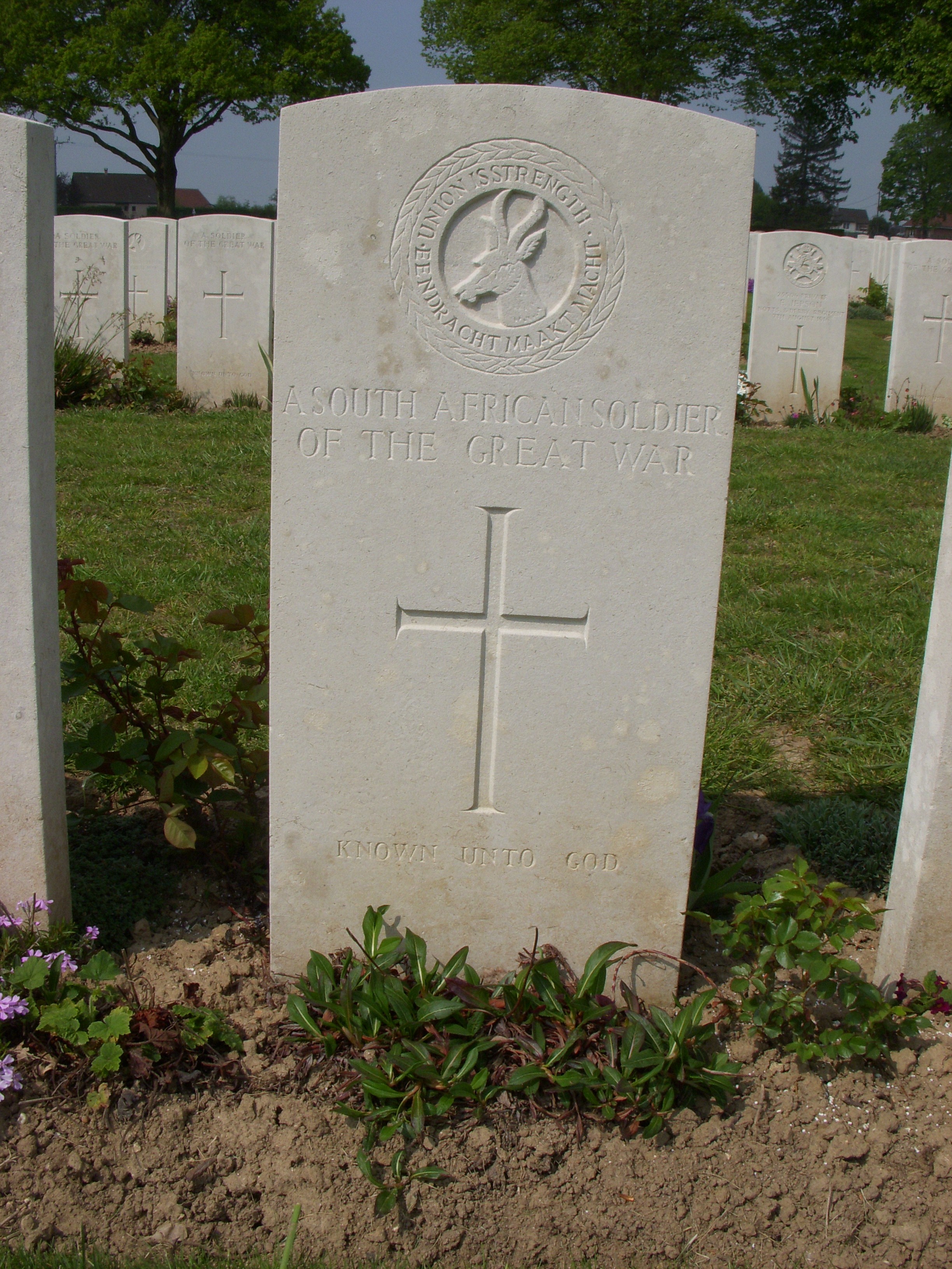 Found at Map Reference 57c.s.18.a or GPS 50.0263, 2.8106. This is South Western part of Delville Wood. One can assume he died during the fighting of July 1916. His means of identification were: Cross on grave E.X.44