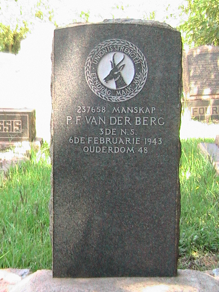 Son of Johanna Lodewika van den Bergh, of West Krugersdorp. ***Headstone reads "VAN DER BERG".