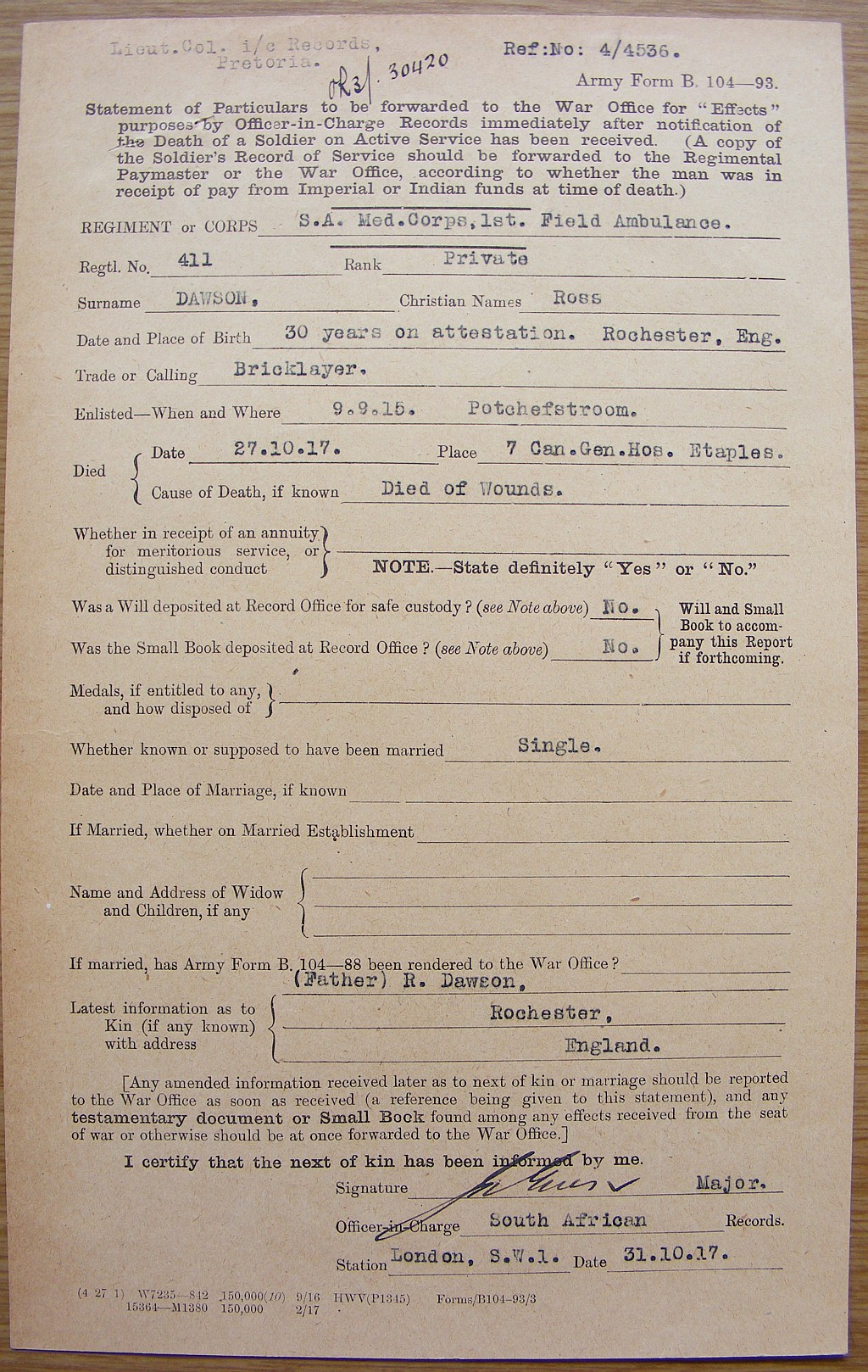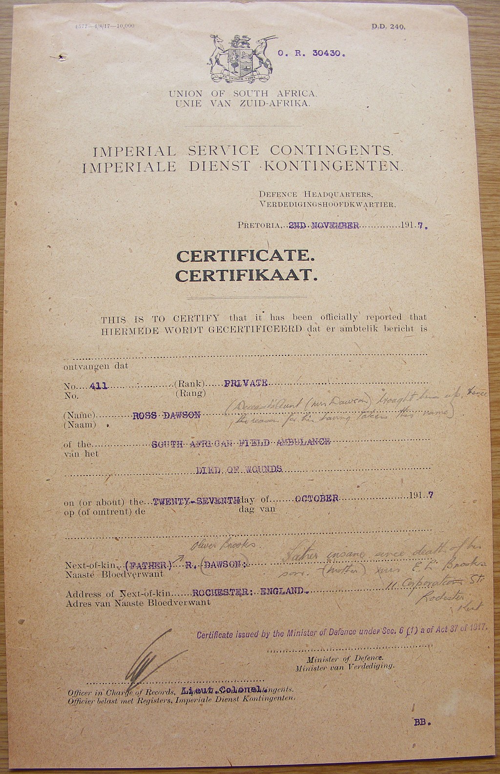 Son of Oliver and Helen Brooks, of 11, Corporation St., Rochester, Kent. (Served as Ross DAWSON).