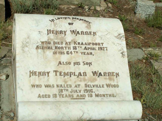 Son of Henry Warren, of Maclear, Cape Province. Commemoration stone in Aliwal North Cemetery, Eastern Cape |