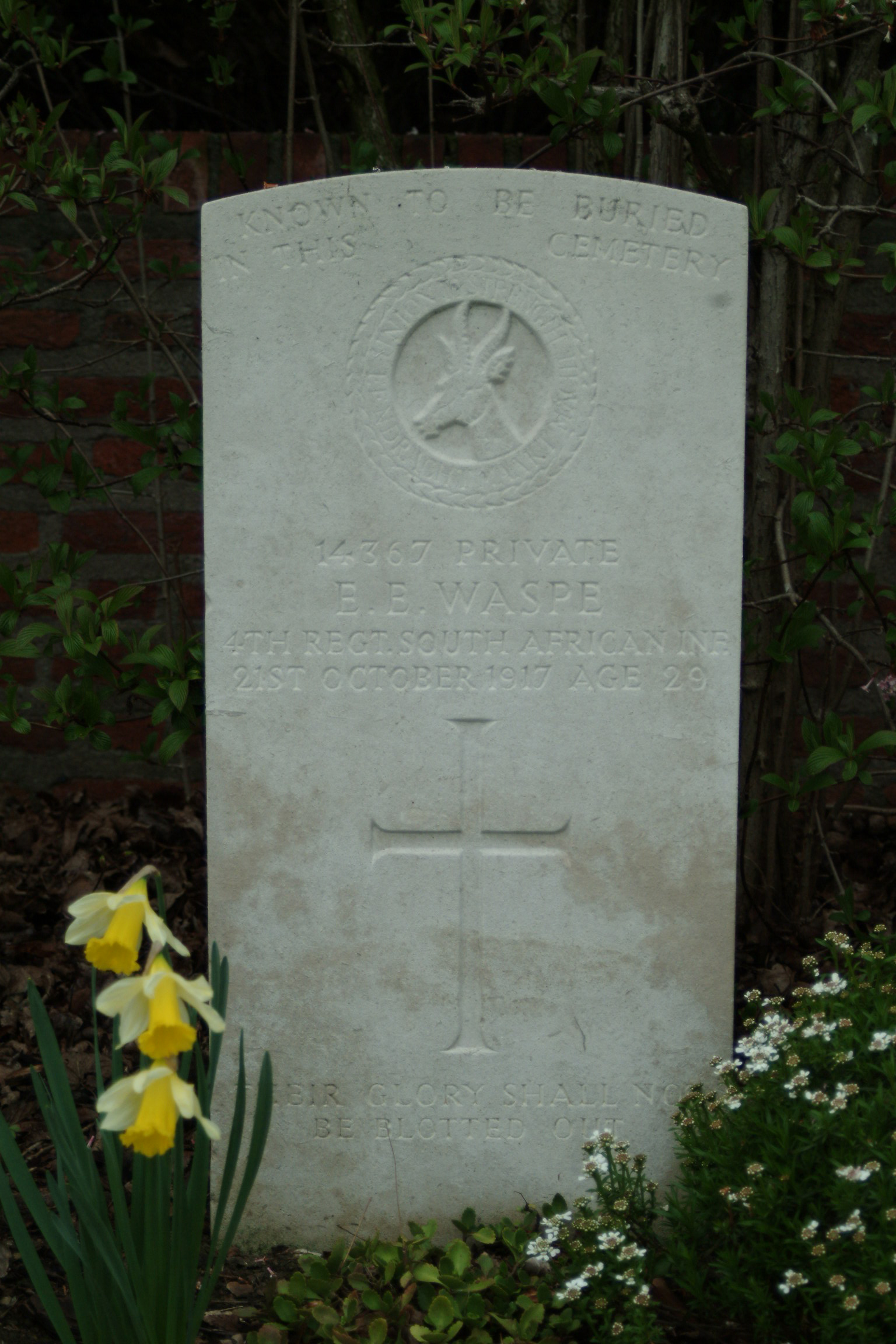 Native of England. Son of Mr. Henry Waspe and Mary Enid Waspe, of 35, Pearson St., Port Elizabeth, Cape Province. Born at Bathurst.