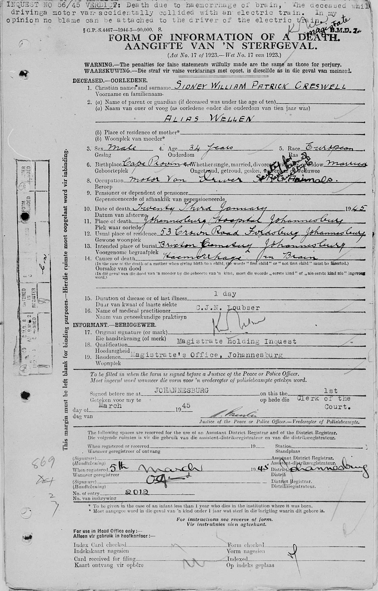 Husband of Kathleen Vera Wellen, of Johannesburg. A driver