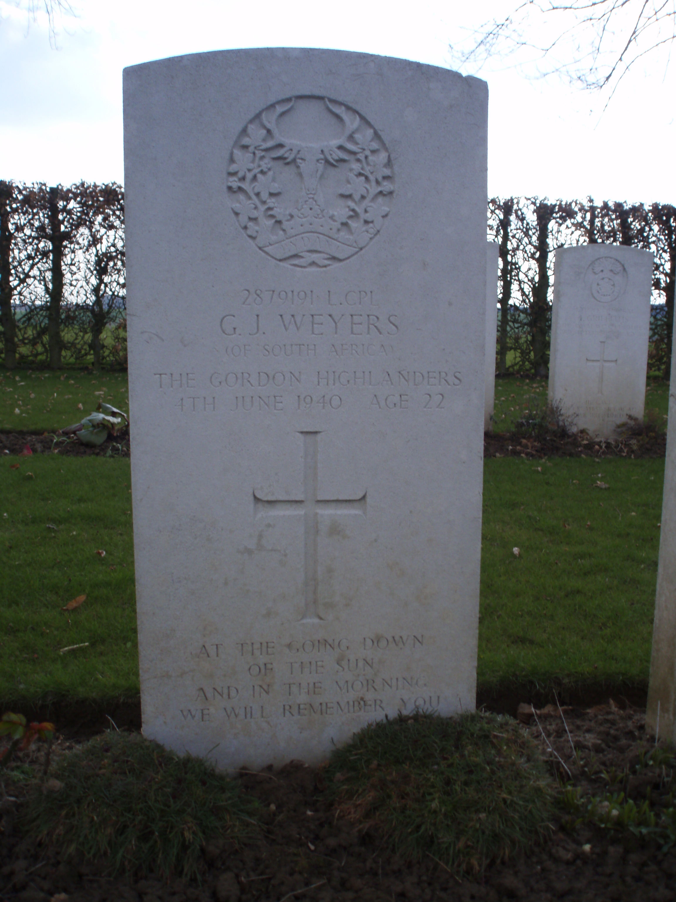 Son of Johannes Jacobus and Hester Johanna Franschsiska Weyers, of Ottery, Cape Province, South Africa.