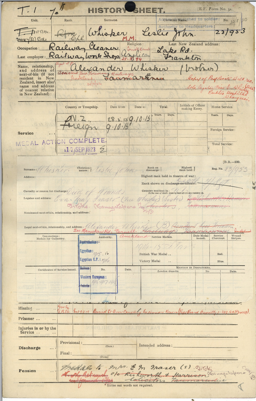 Son of Charles and Eliza Whisker, of Newmarket, Auckland, New Zealand. A railway cleaner. ref. South African Roll of Honour 1914-1918 |