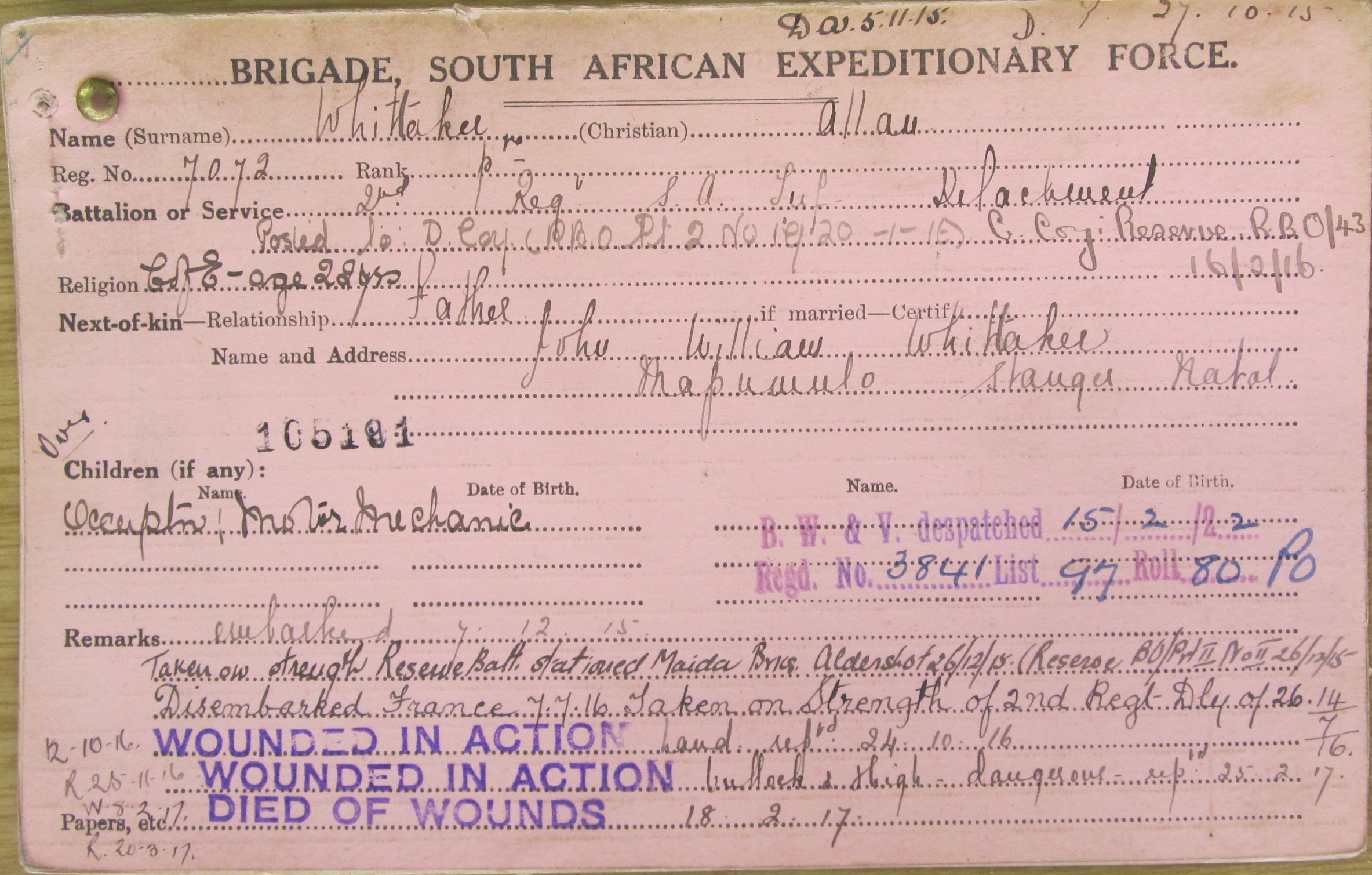 Son of John William and Lucy Bertram Whittaker, of Stanger, Natal. Born Mapumulo, Natal. A motor mechanic. His brother also died on service